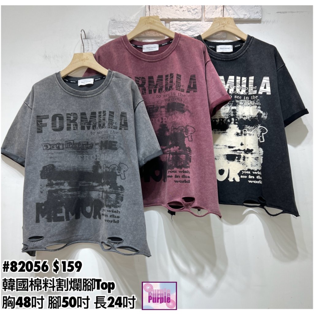 (現貨) #82056 韓國洗水棉料割爛腳款Top (胸48吋 腳50吋 長24吋)