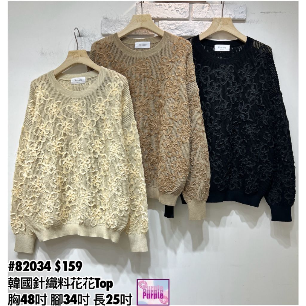 (現貨) #82034 韓國針織料花花Top (胸48吋 腳34吋 長25吋)