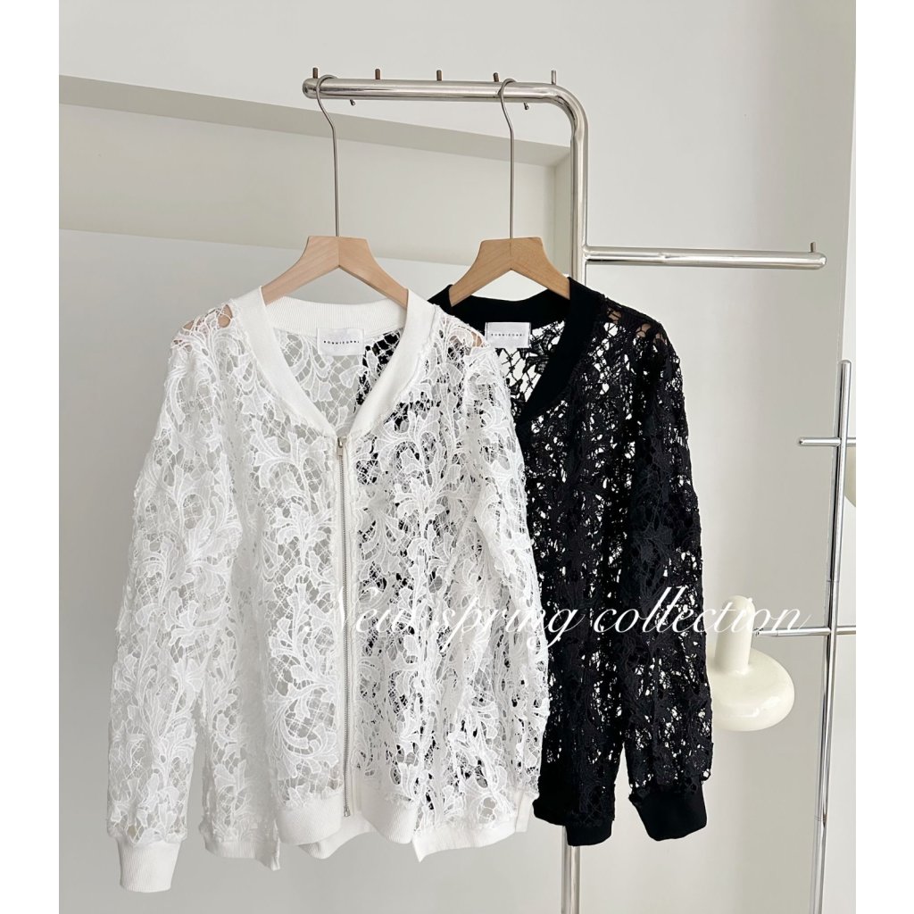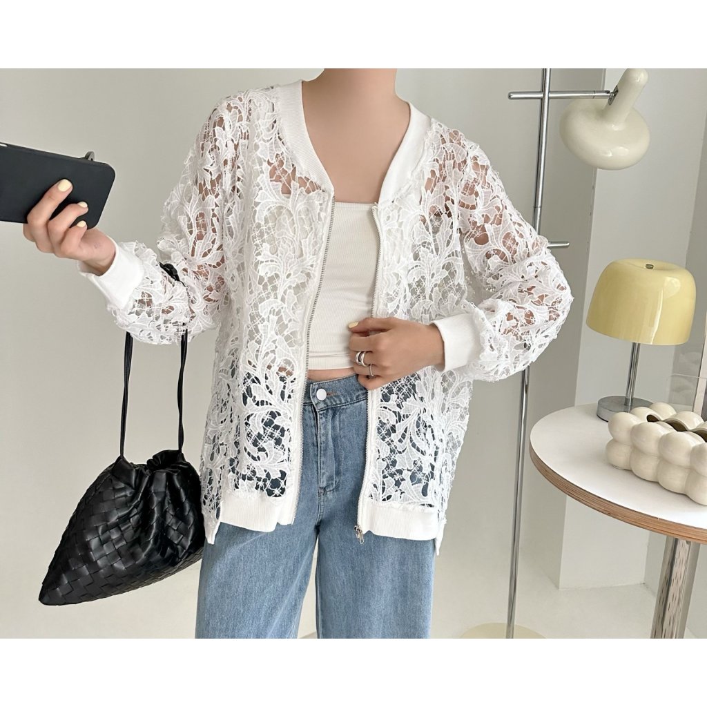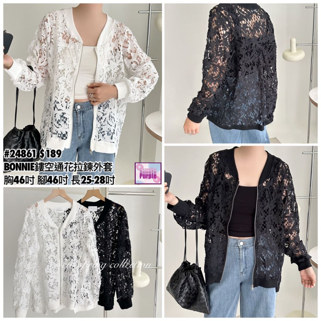 (現貨) #24861 BONNIE鏤空通花拉鍊外套 (胸46吋 腳46吋 長25-28吋)