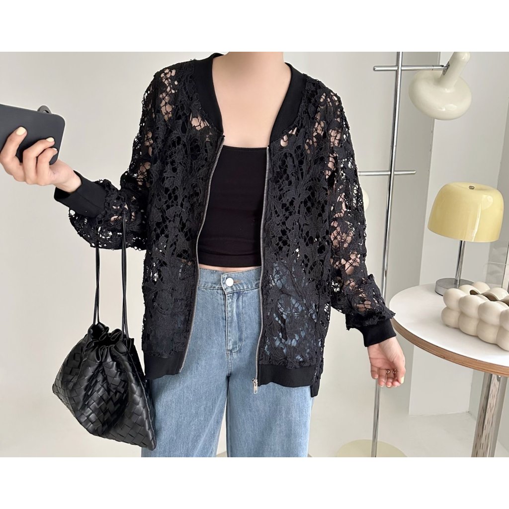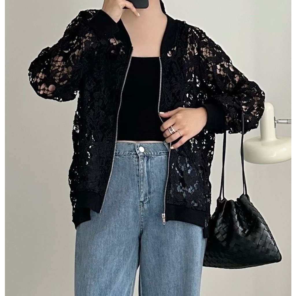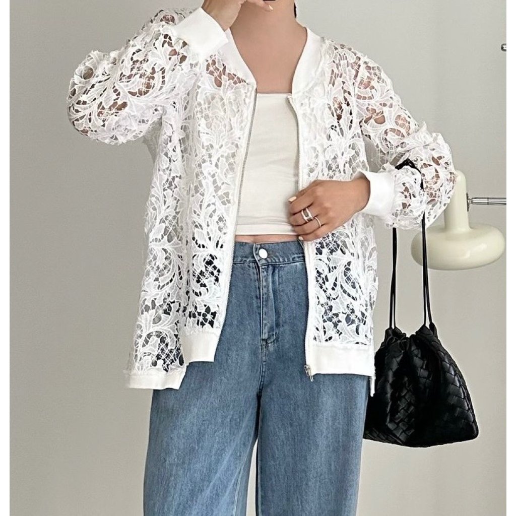 (現貨) #24861 BONNIE鏤空通花拉鍊外套 (胸46吋 腳46吋 長25-28吋)