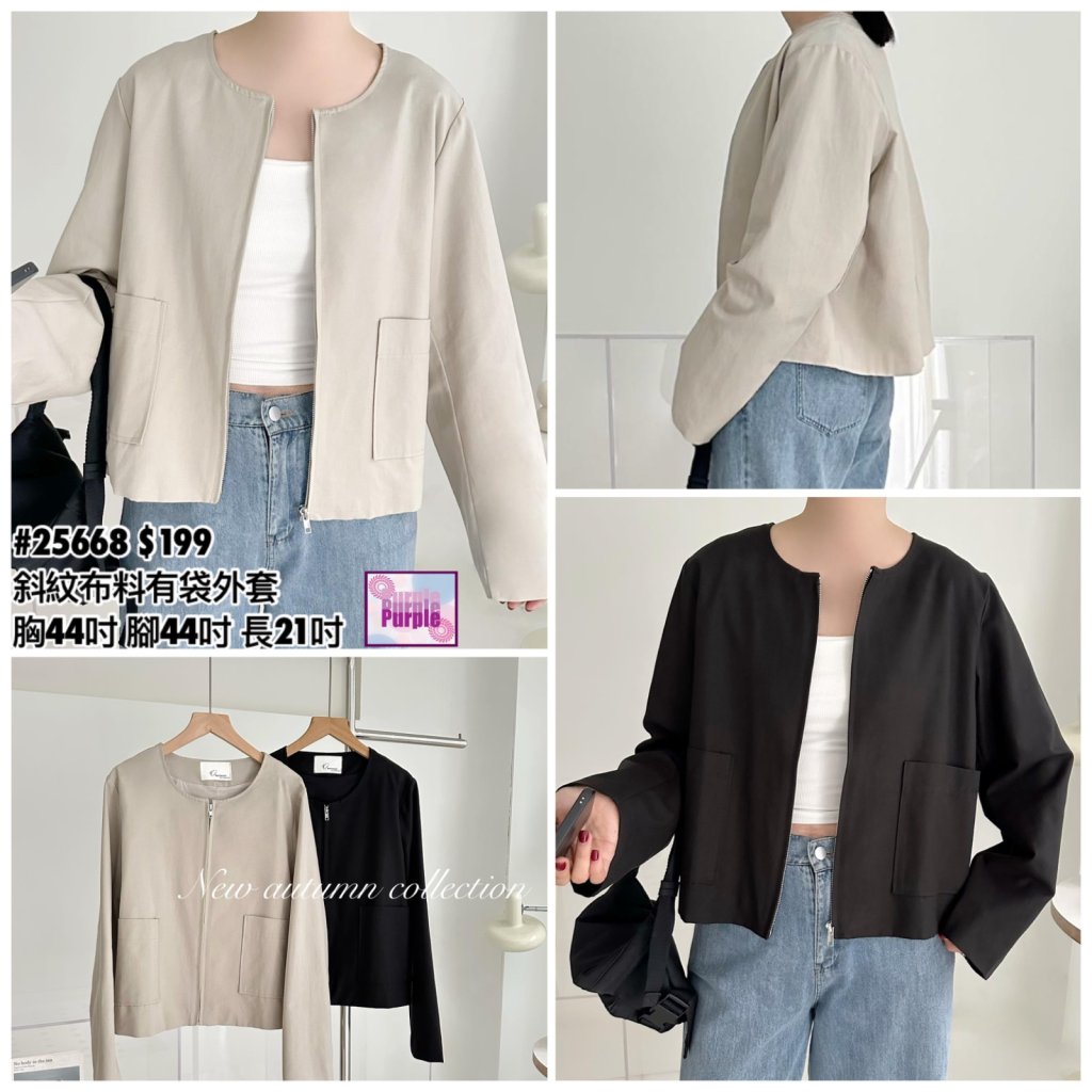 主頁 (現貨) #25668 BONNIE斜紋布料有袋外套 (胸44吋 腳44吋 長21吋)