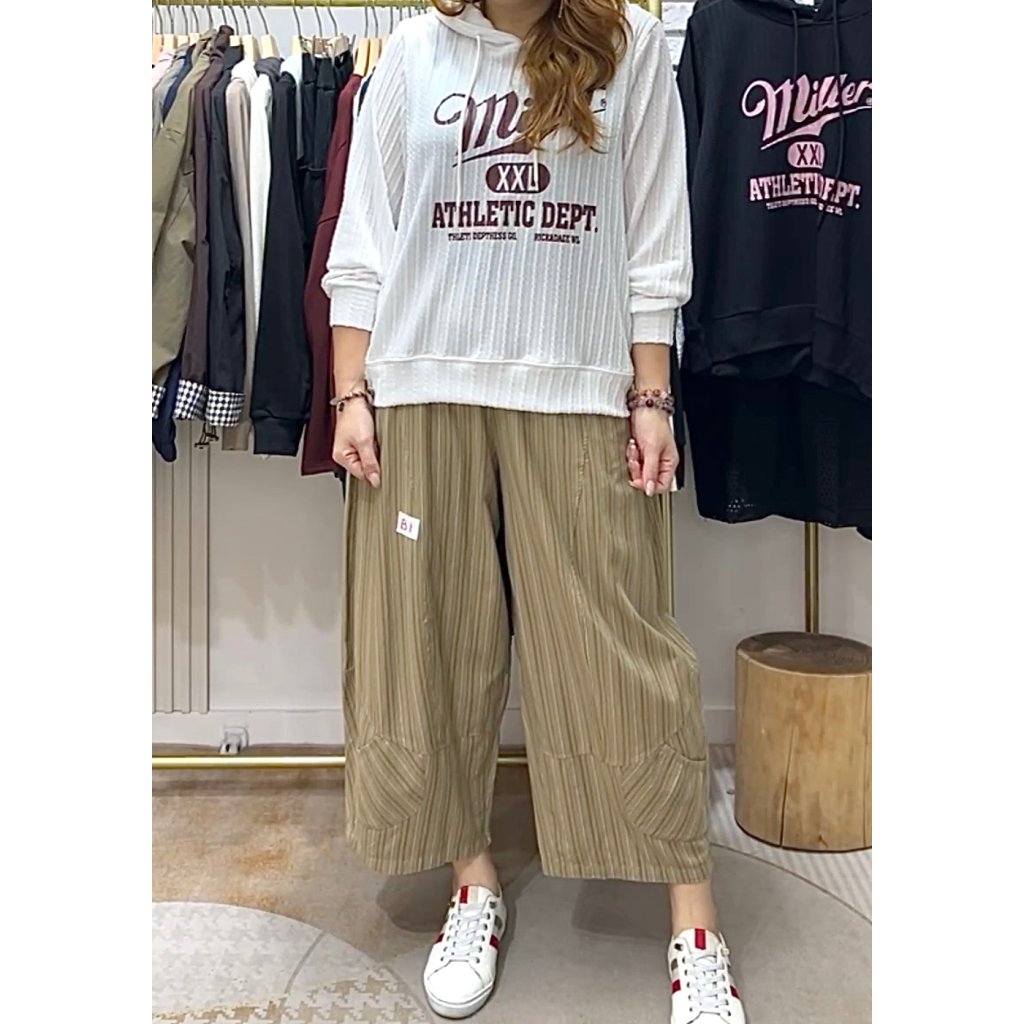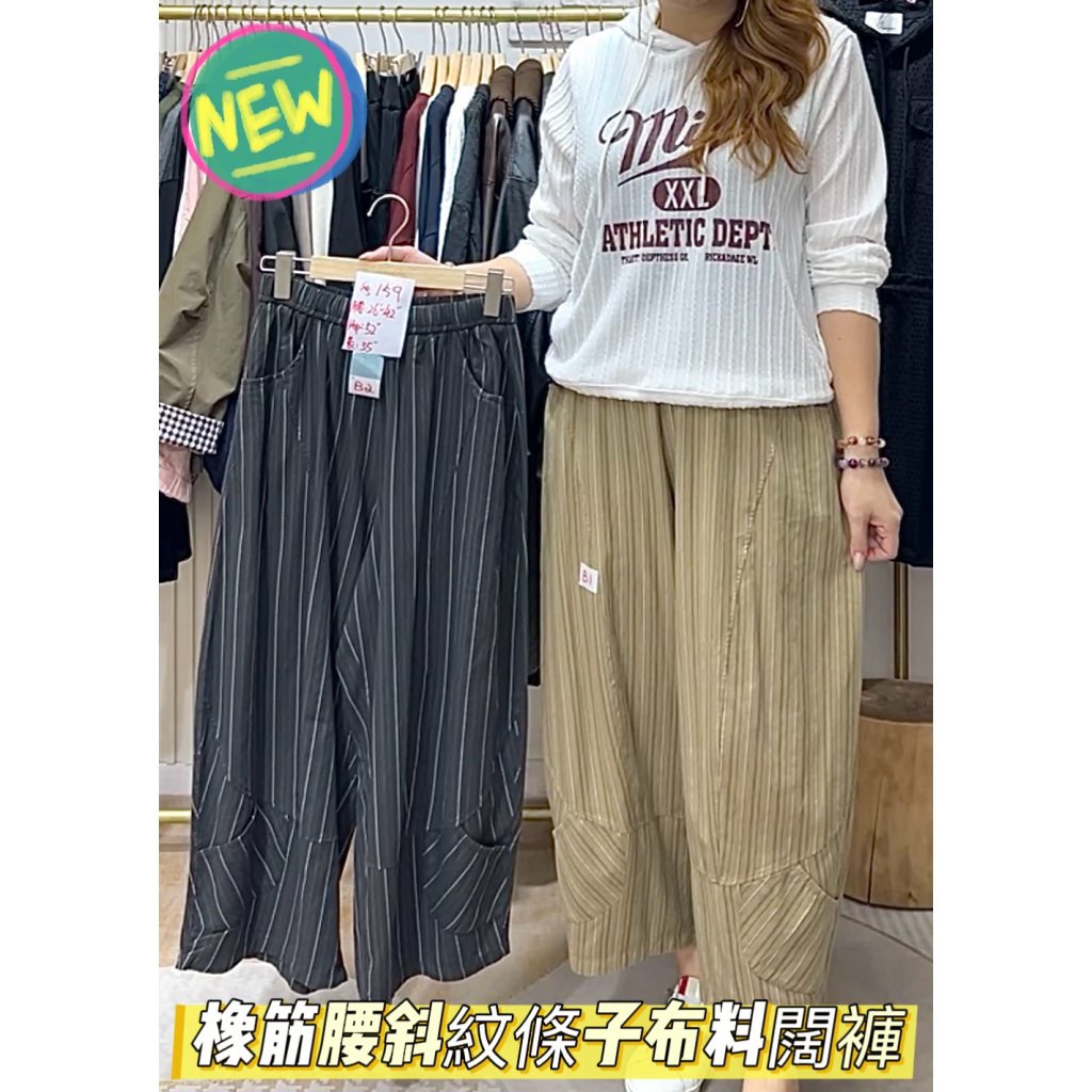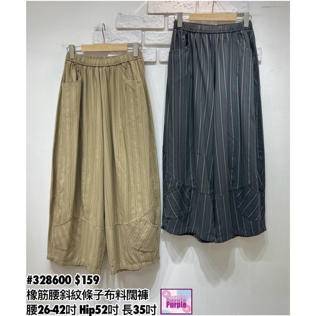 (現貨) #328600 橡筋腰斜紋條子布料闊褲 (腰26-42吋 Hip52吋 長35吋)