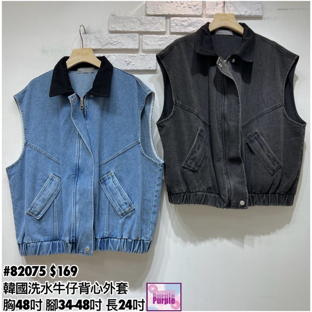 主頁 (訂貨大約20天) #82075 韓國洗水牛仔背心褸 (胸48吋 腳34-48吋 長24吋)