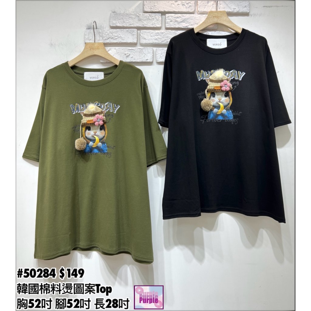 (現貨) #50284 韓國棉料燙圖案Top (胸52吋 腳52吋 長28吋)