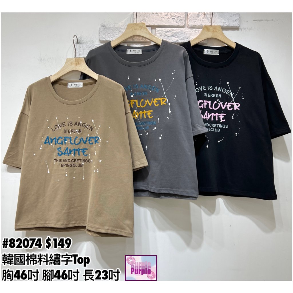 (現貨) #82074 韓國棉料繡字Top (胸46吋 腳46吋 長23吋)