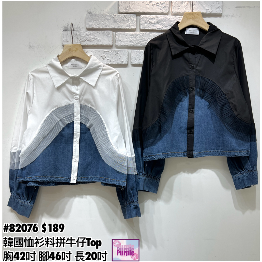 主頁 (訂貨大約20天) #82076 韓國恤衫料拼牛仔Top (胸42吋 腳46吋 長20吋)