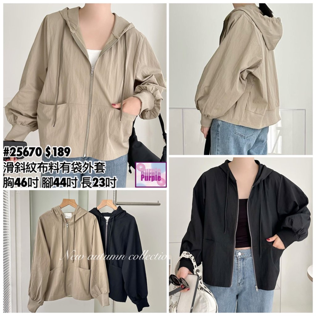 (現貨) #25670 BONNIE滑斜紋布料有袋外套 (胸46吋 腳44吋 長23吋)