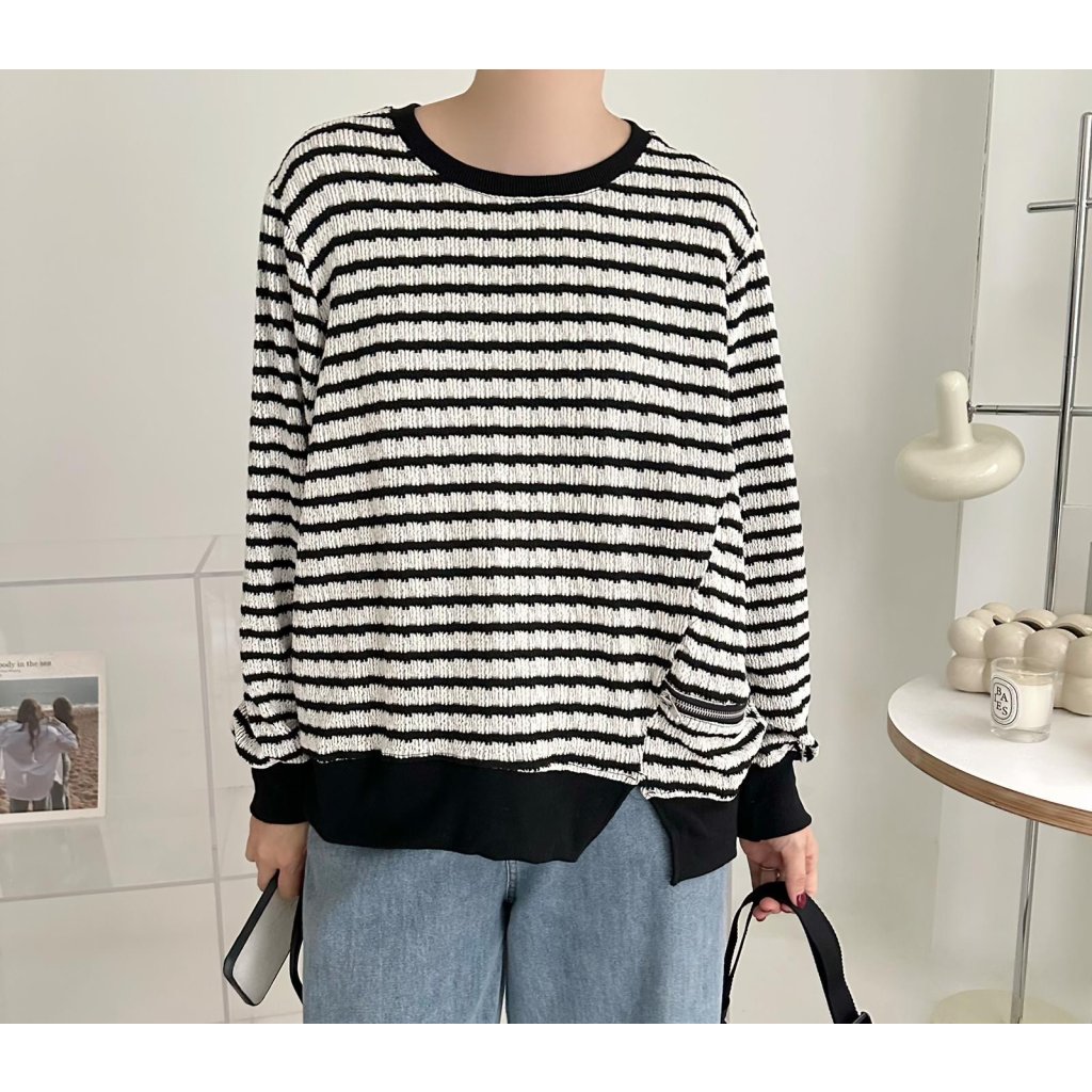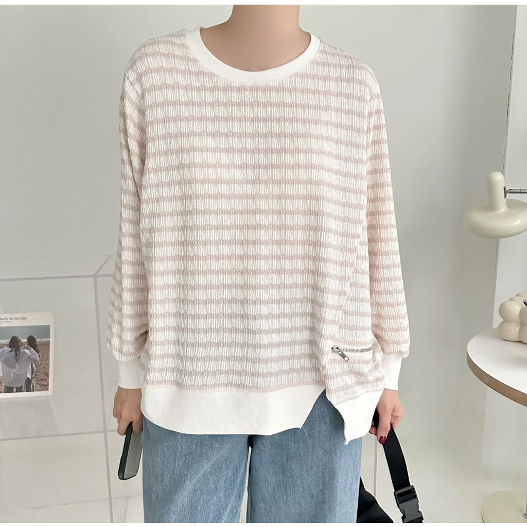 (訂貨大約20天) #25707 BONNIE彈性壓紋棉料橫間Top (胸46吋 腳44吋 長25吋)