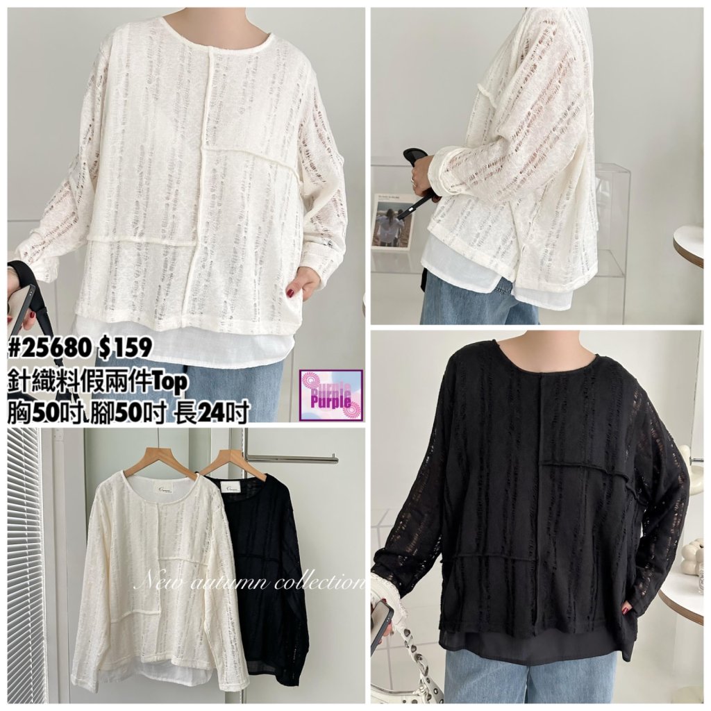 (訂貨大約20天) #25680 BONNIE針織料假兩件Top (胸50吋 腳50吋 長24吋)