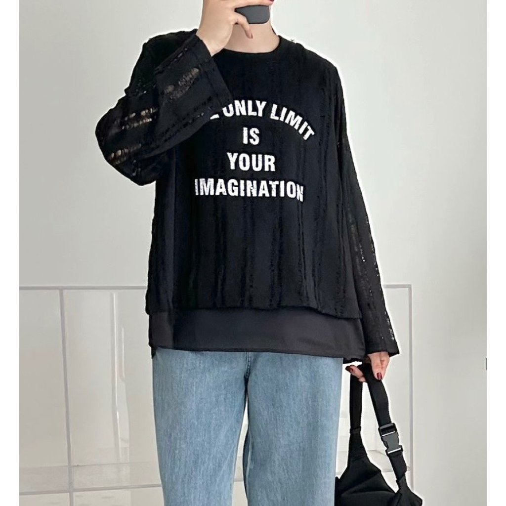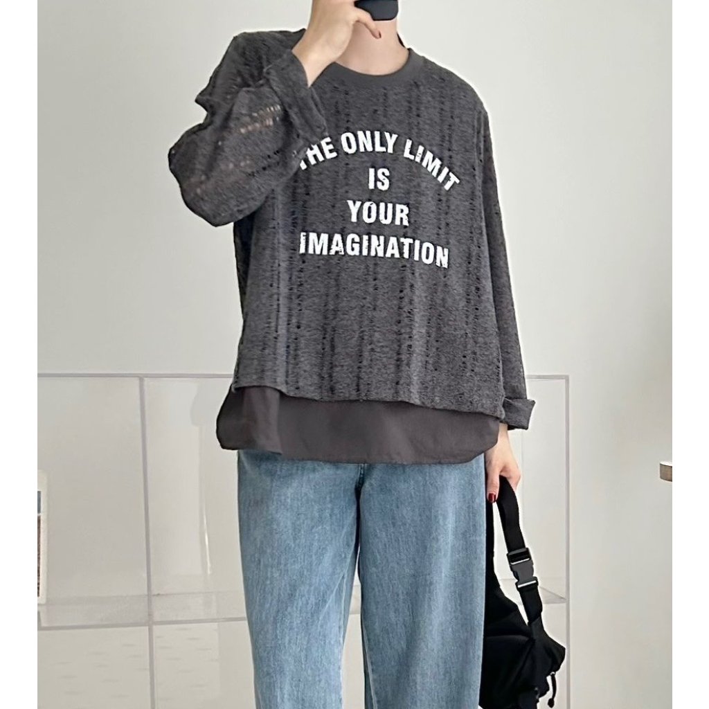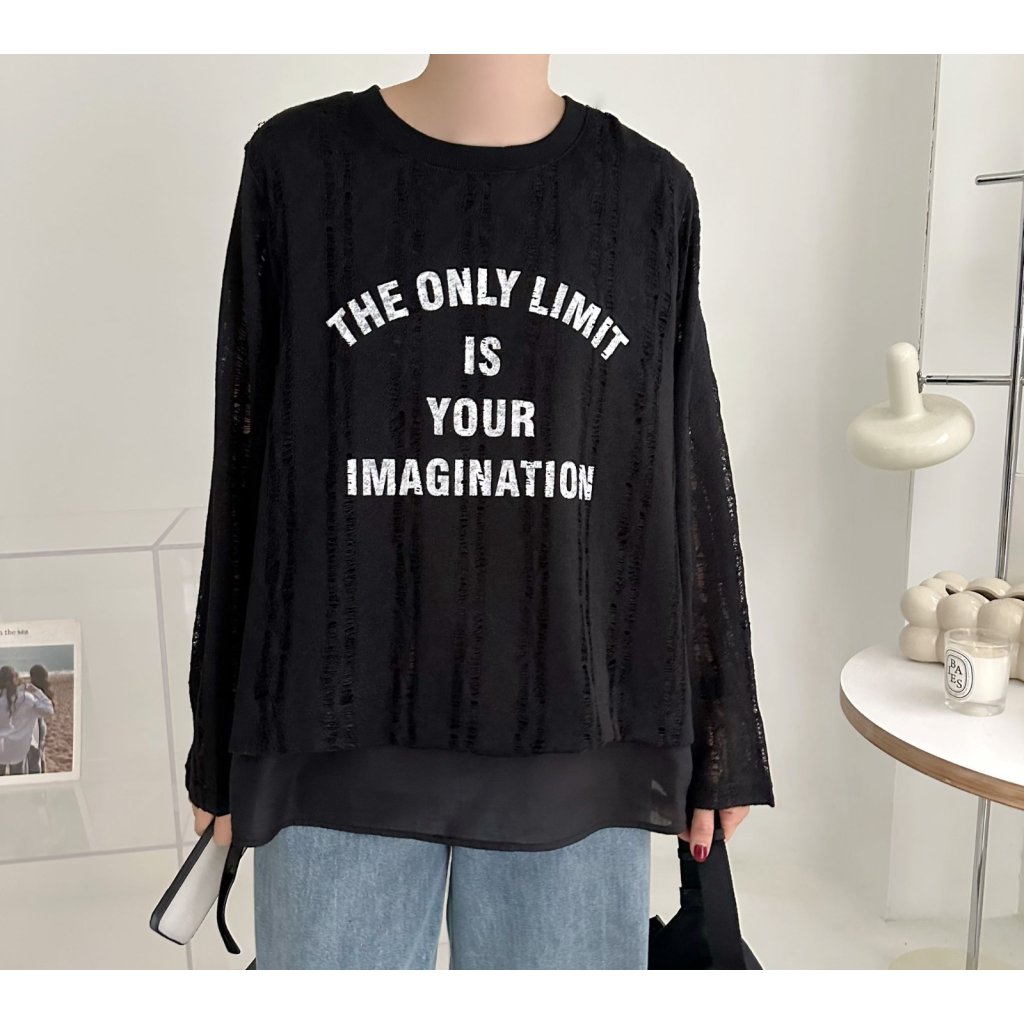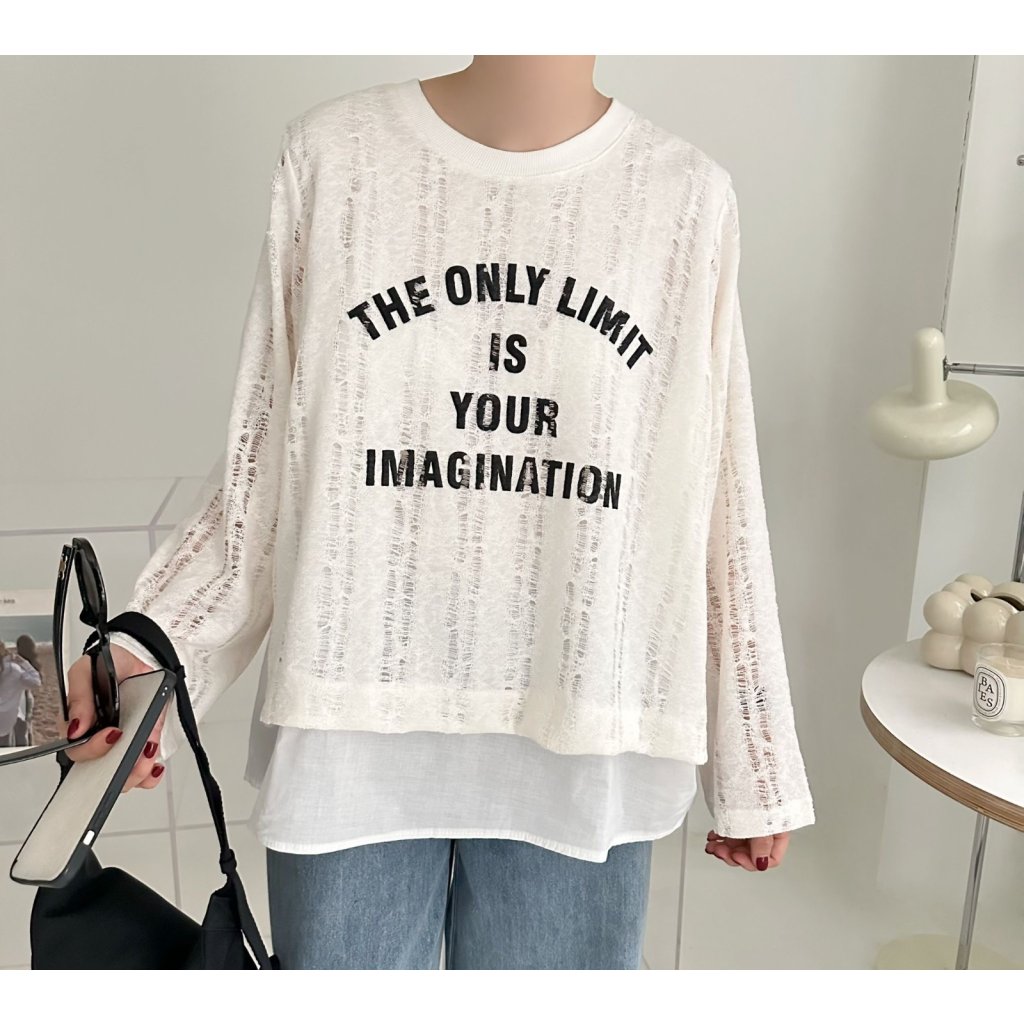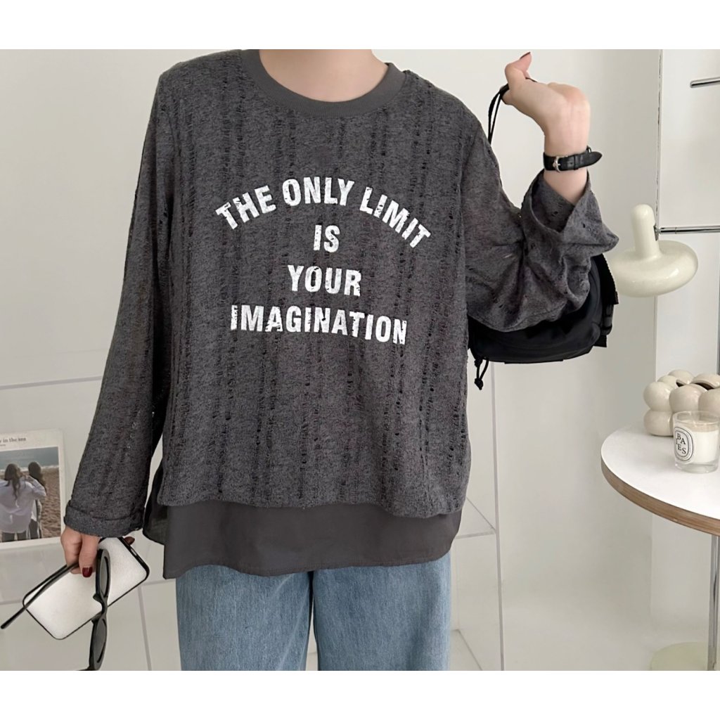 (訂貨大約20天) #25654 BONNIE針織料印字假兩件Top (胸46吋 腳48吋 長26吋)