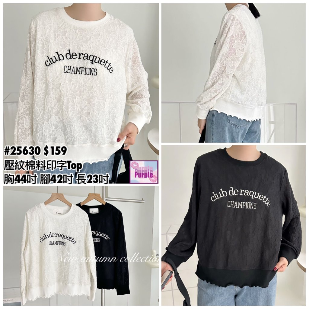 (現貨) #25630 BONNIE壓紋棉料印字Top (胸44吋 腳42吋 長23吋)