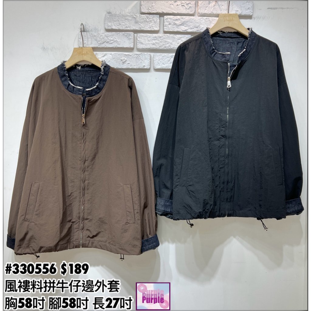 (訂貨大約20天) #330556 風褸料拼牛仔邊有袋拉鍊外套 (胸58吋 腳58吋 長27吋)