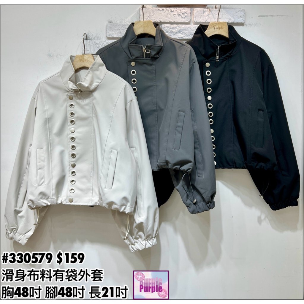 (訂貨大約20天) #330579 滑身布料拼有袋拉鍊外套 (胸48吋 腳48吋 長21吋)
