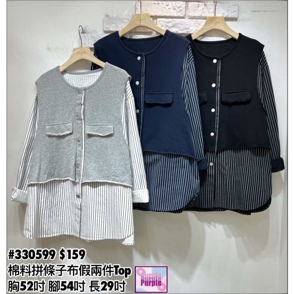 主頁 (訂貨大約20天) #330599 棉料拼條子布假兩件Top (胸52吋 腳54吋 長29吋)