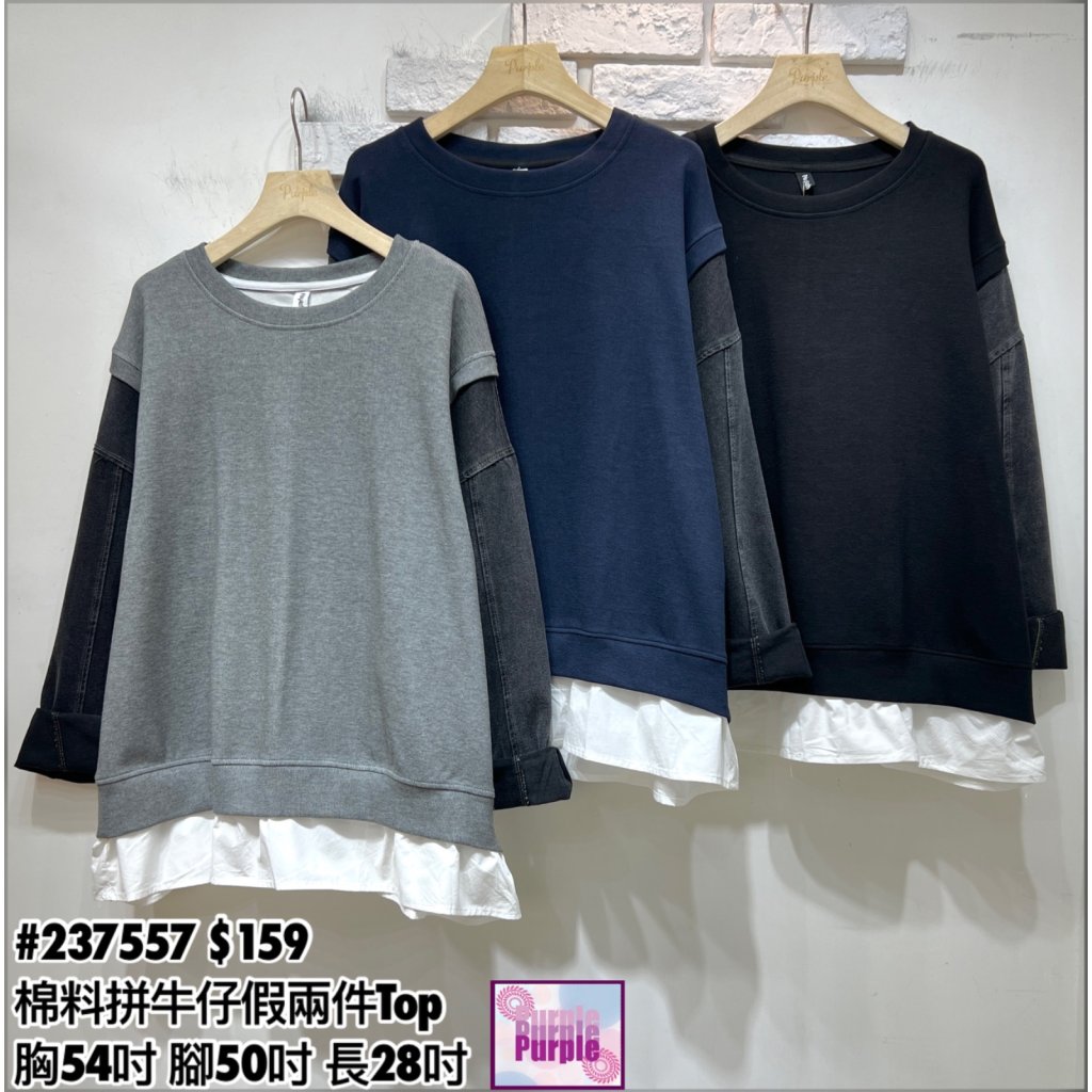 (訂貨大約20天) #237557 棉料拼牛仔假兩件Top (胸54吋 腳50吋 長28吋)