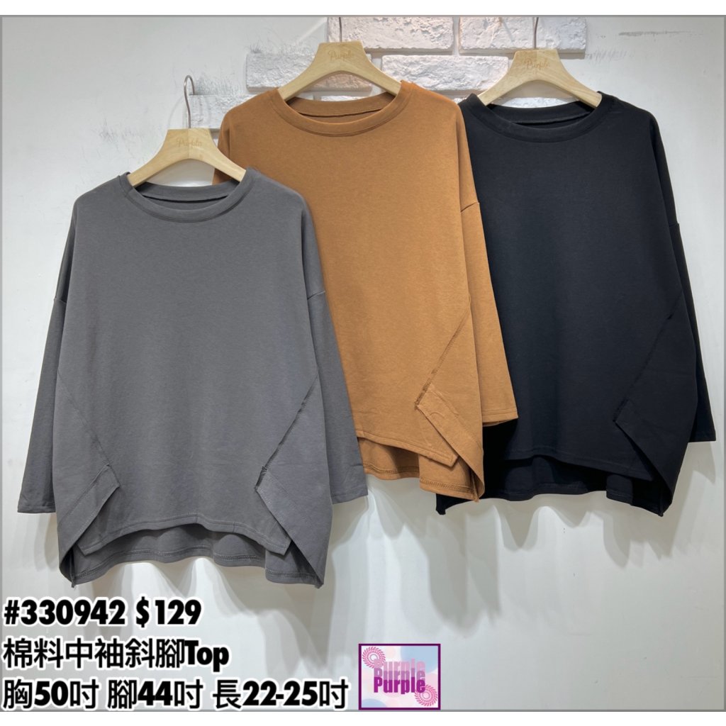 (訂貨大約20天) #330942 棉料中袖斜腳Top (胸50吋 腳44吋 長22-25吋)