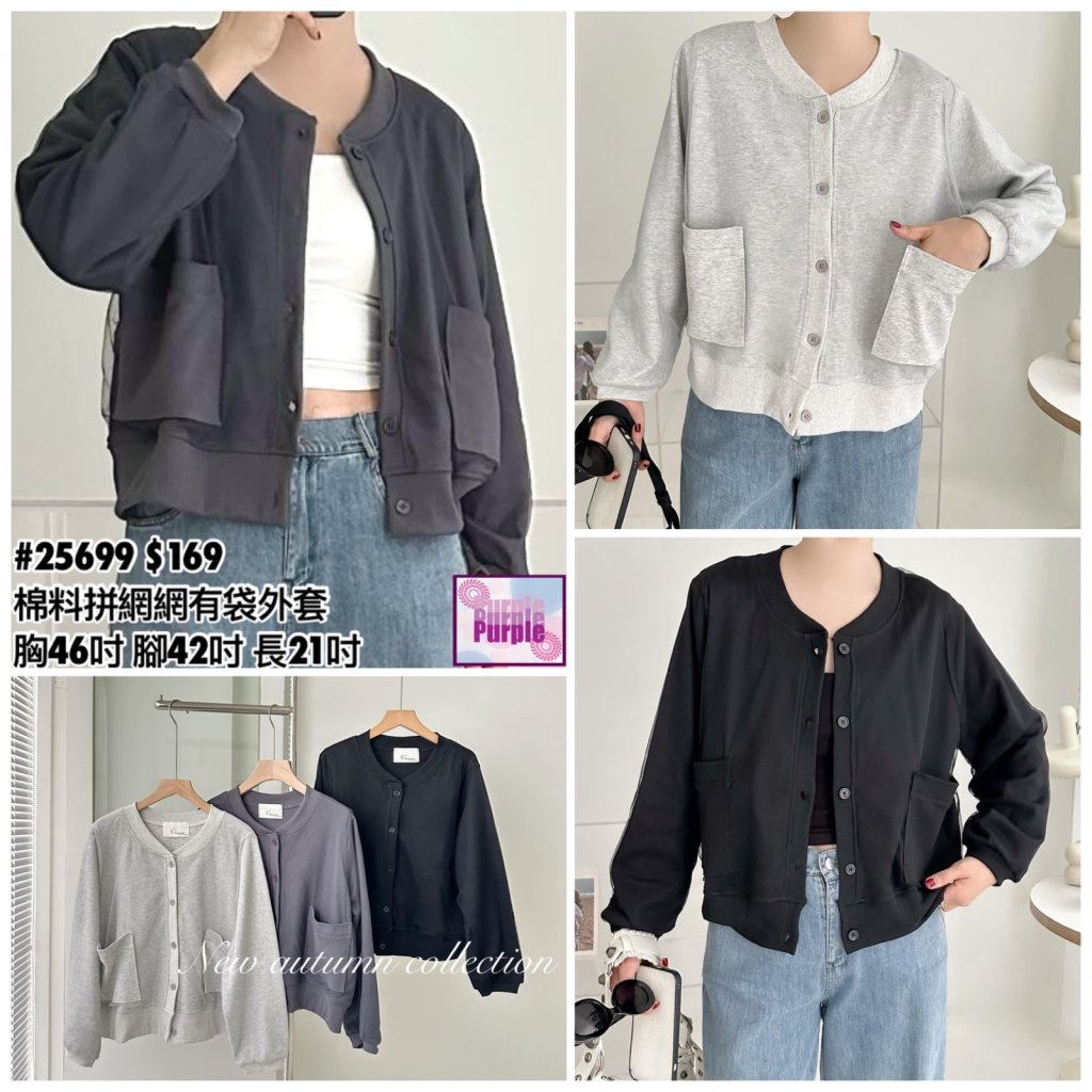 (訂貨大約20天) #25699 BONNIE棉料拼網網有袋外套 (胸46吋 腳42吋 長21吋)
