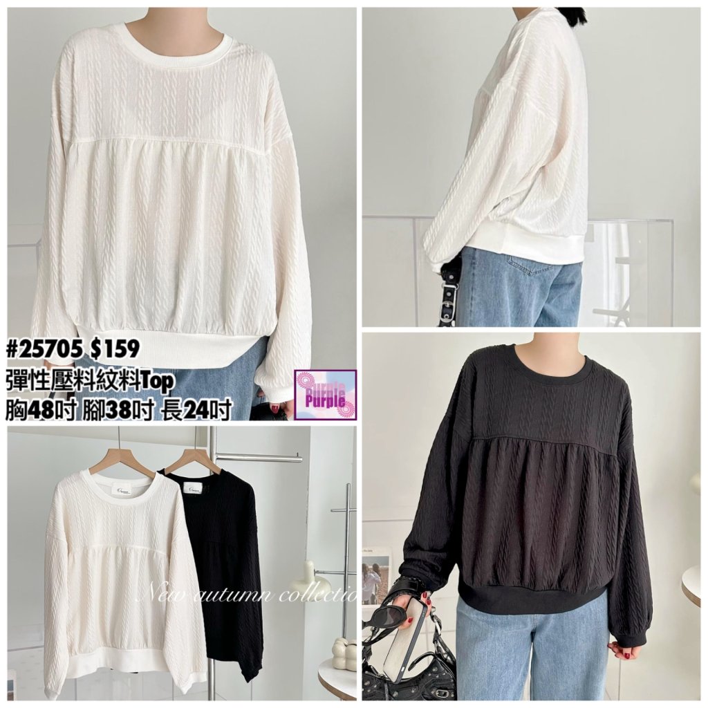 (訂貨大約20天) #25705 BONNIE彈性壓料紋料Top (胸48吋 腳38吋 長24吋)