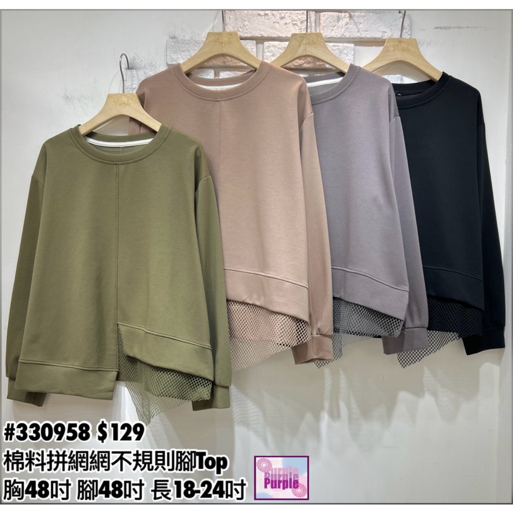 (訂貨大約20天) #330958 棉料拼網網不規則腳Top (胸48吋 腳48吋 長18-24吋)