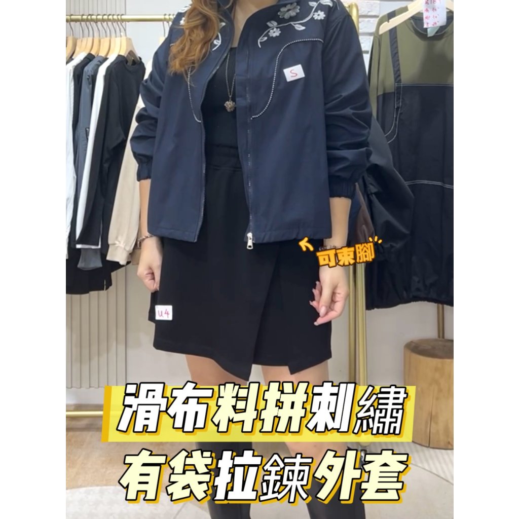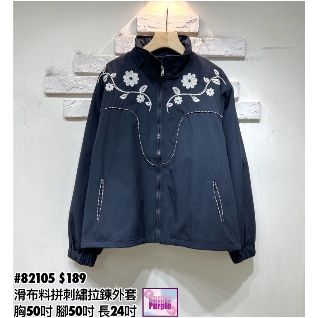 (現貨) #82105 滑布料拼刺繡拉鍊外套 (胸50吋 腳50吋 長24吋)