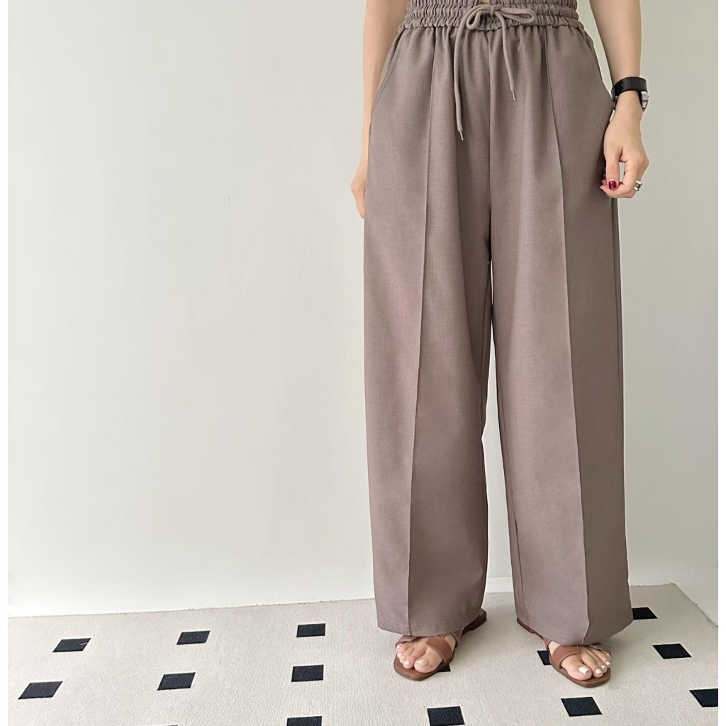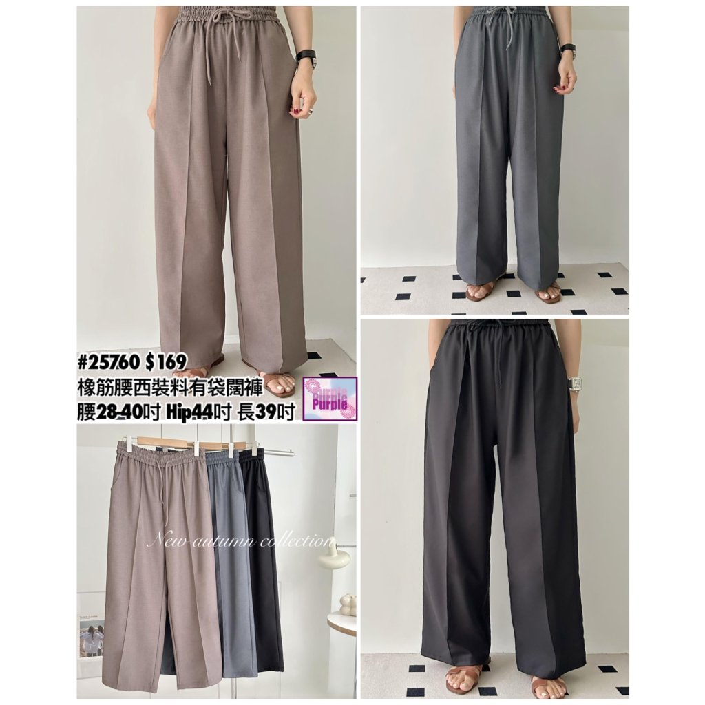 主頁 (現貨) #25760 BONNIE橡筋腰西裝料有袋闊褲 (腰28-40吋 Hip44吋 長39吋)