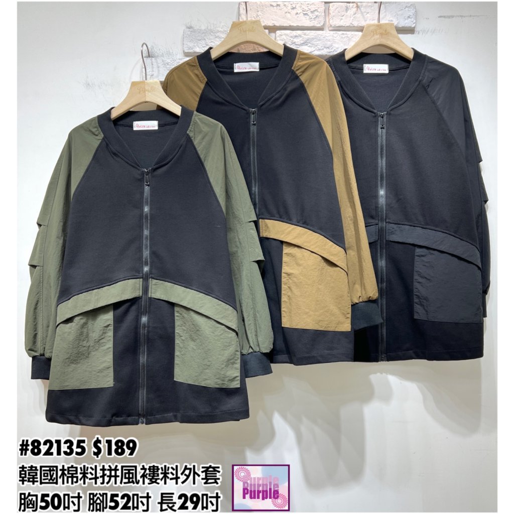 (現貨) #82135 韓國棉料拼風褸料有袋外套 (胸50吋 腳52吋 長29吋)