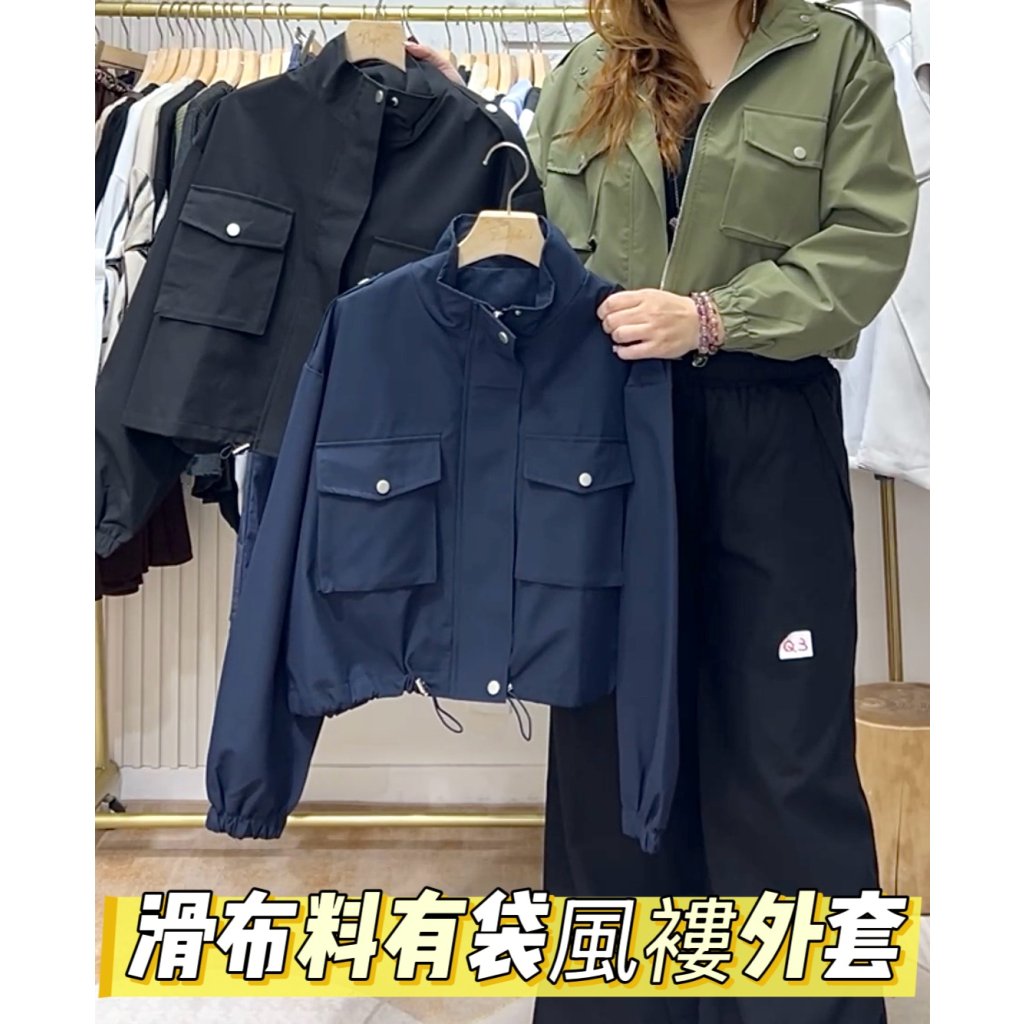 (現貨) #330931 滑布料有袋風褸外套 (胸48吋 腳46吋 長20吋)