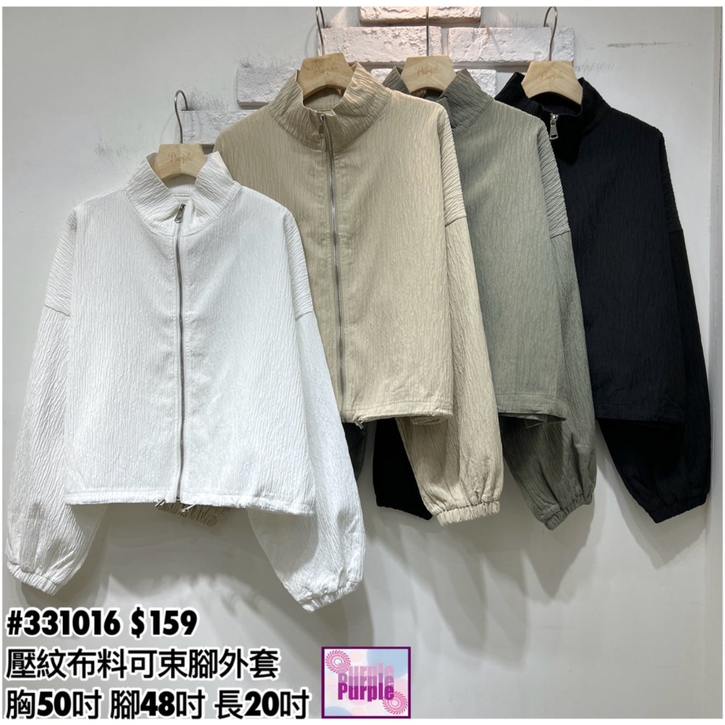 主頁 (現貨) #331016 壓紋布料可束腳拉鍊外套 (胸50吋 腳48吋 長20吋)