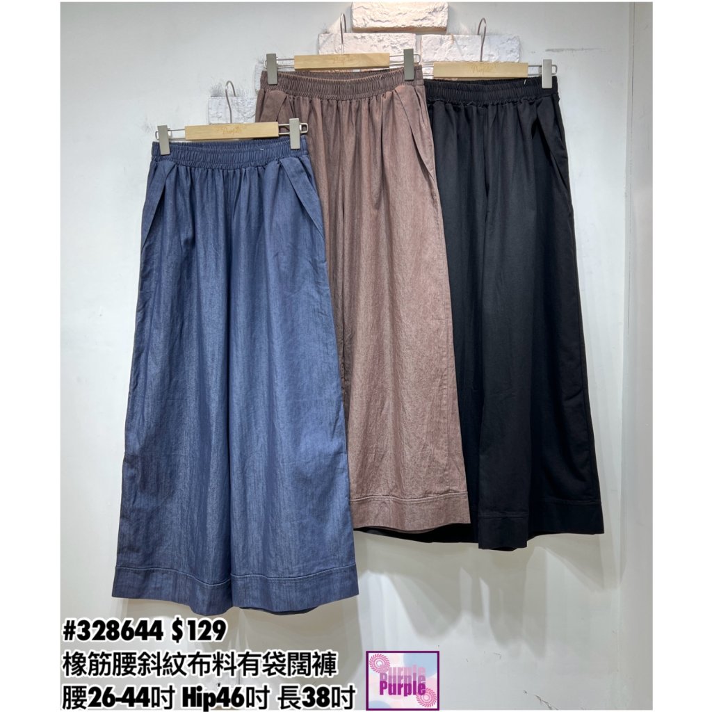 (現貨) #328644 橡筋腰斜紋布料有袋闊褲 (腰26-44吋 Hip46吋 長38吋)