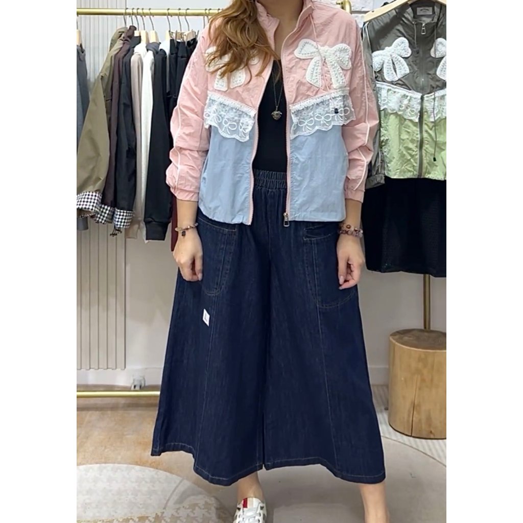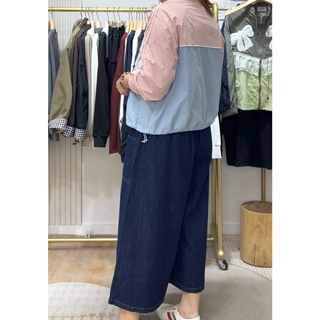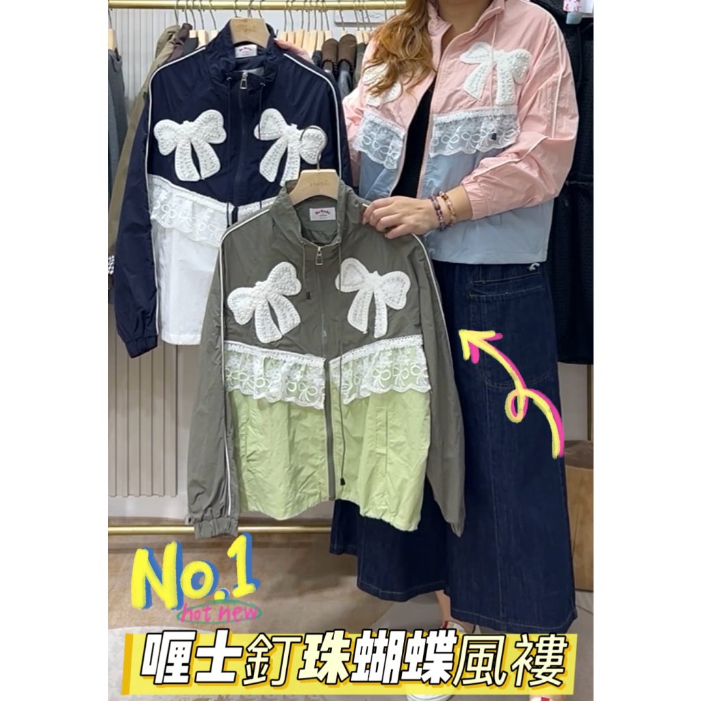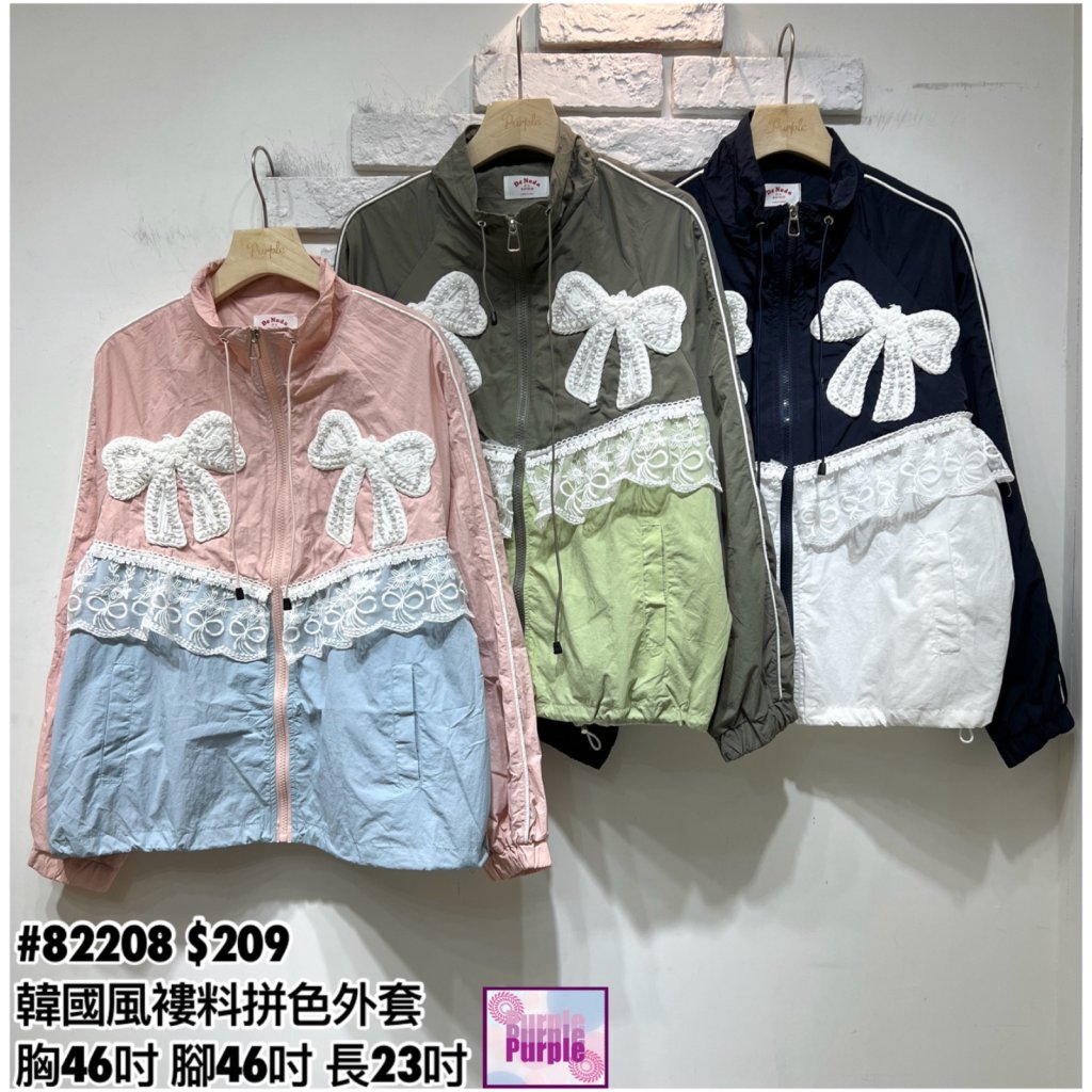 主頁 (現貨) #82208 韓國風褸料喱士釘珠拼色有袋外套 (胸46吋 腳46吋 長23吋)