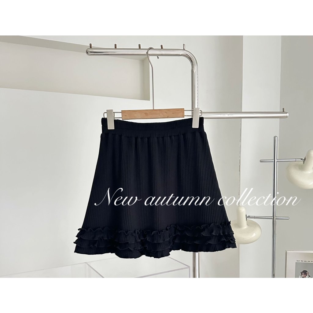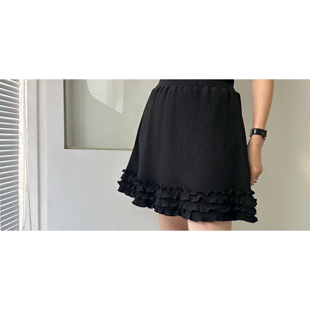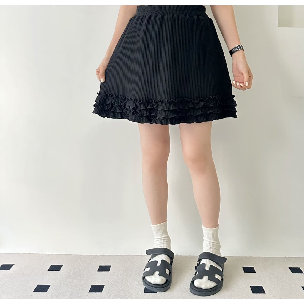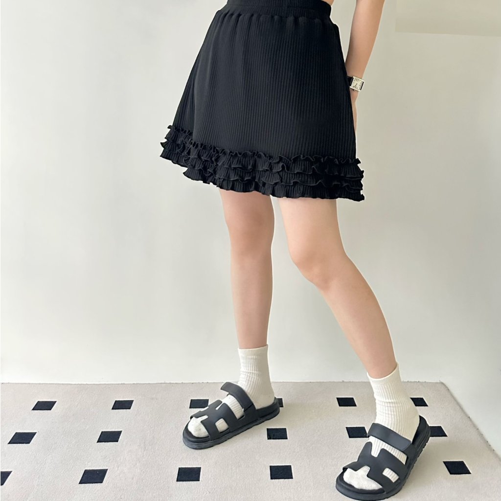 (現貨) #25791 BONNIE橡筋腰坑紋棉料拼ruffle腳有袋裙褲 (腰24-48吋 Hip42吋 長17吋)