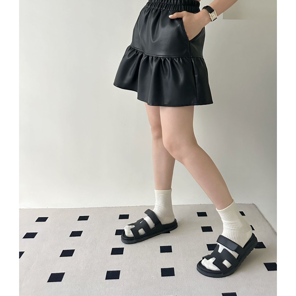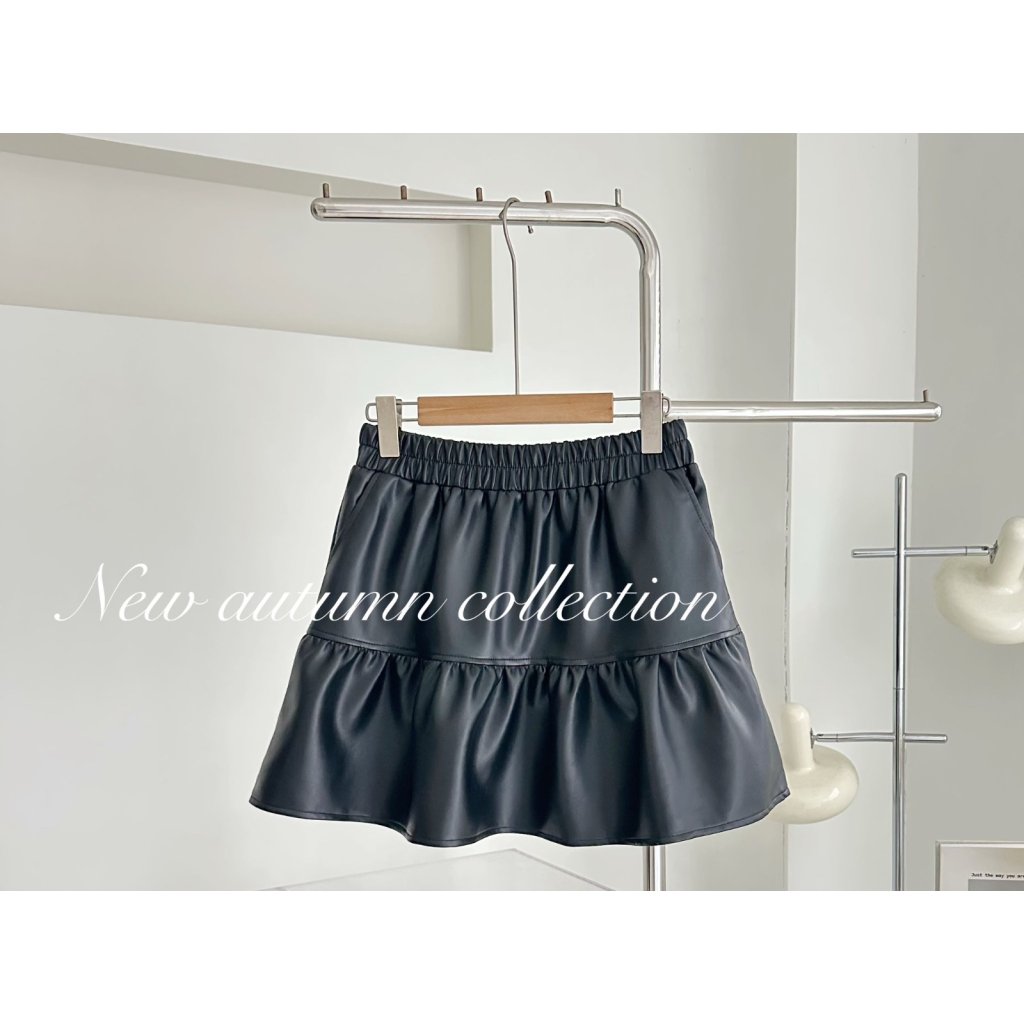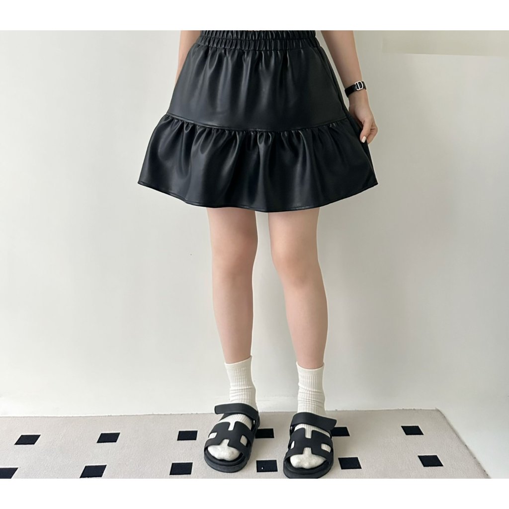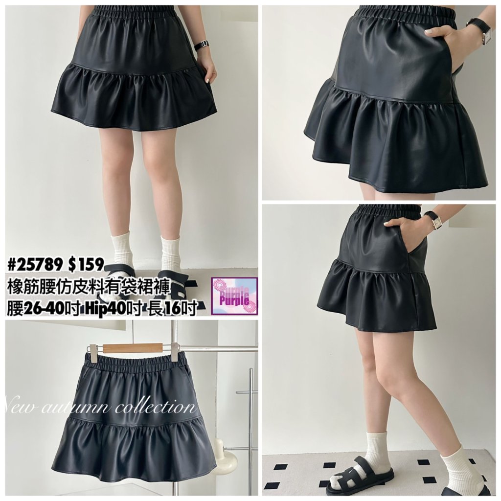 (現貨) #25789 BONNIE橡筋腰仿皮料有袋裙褲 (腰26-40吋 Hip40吋 長16吋)