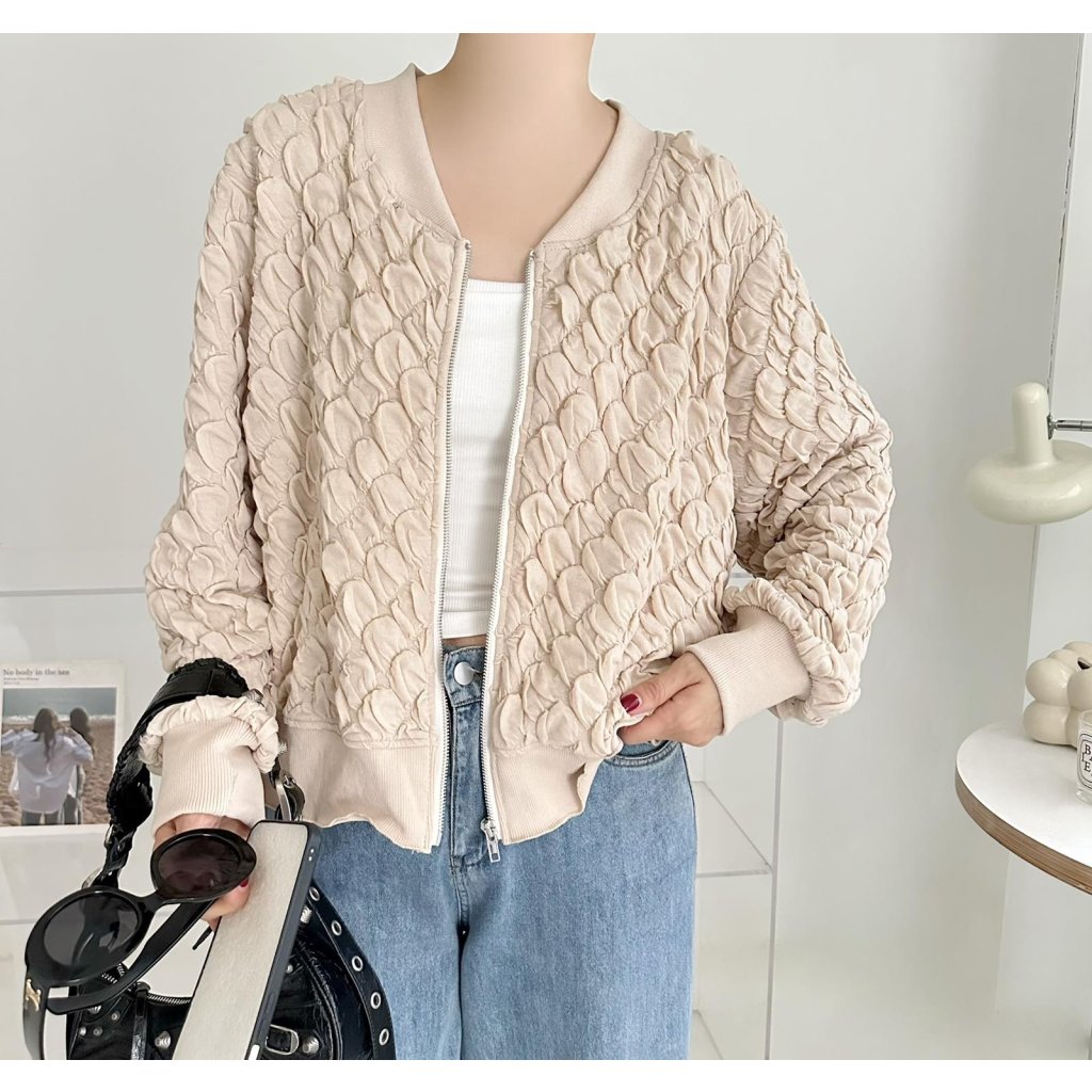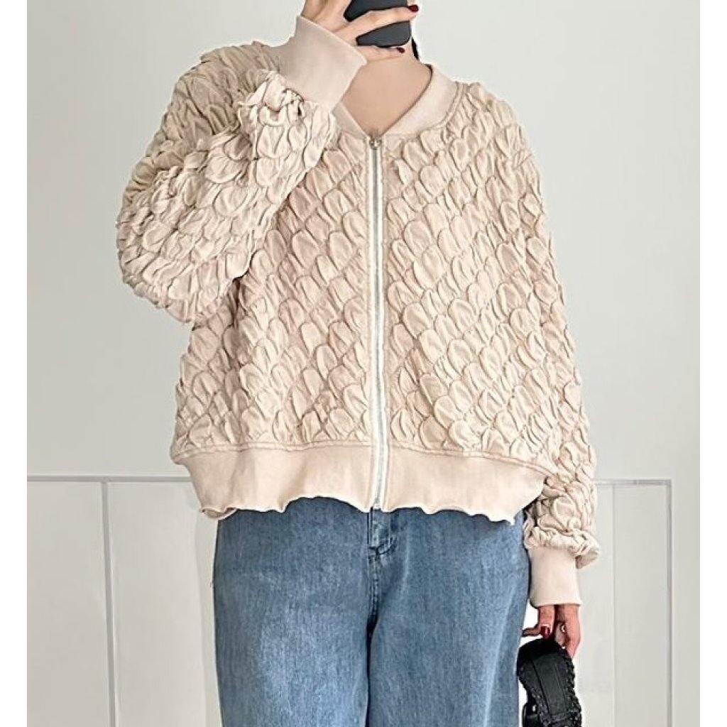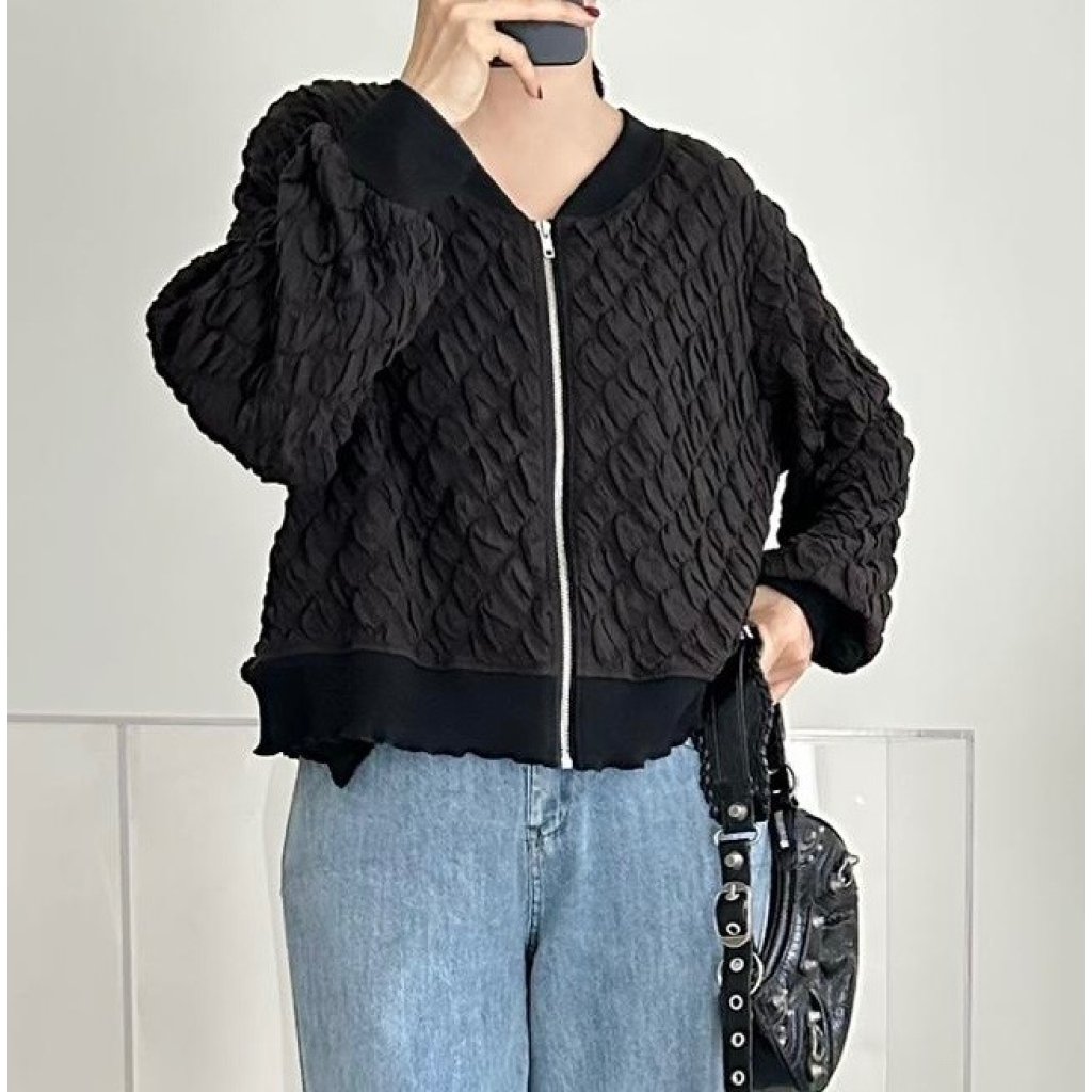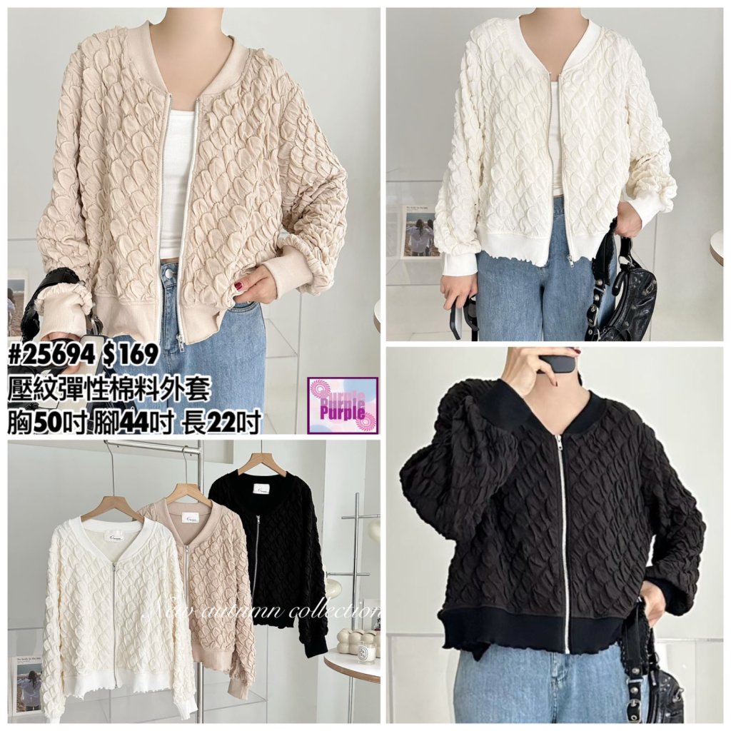 (現貨) #25694 BONNIE壓紋彈性棉料有袋拉鍊外套 (胸50吋 腳44吋 長22吋)
