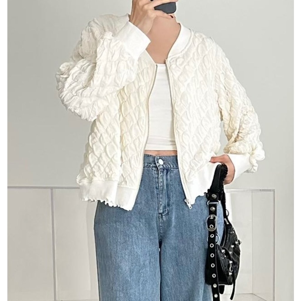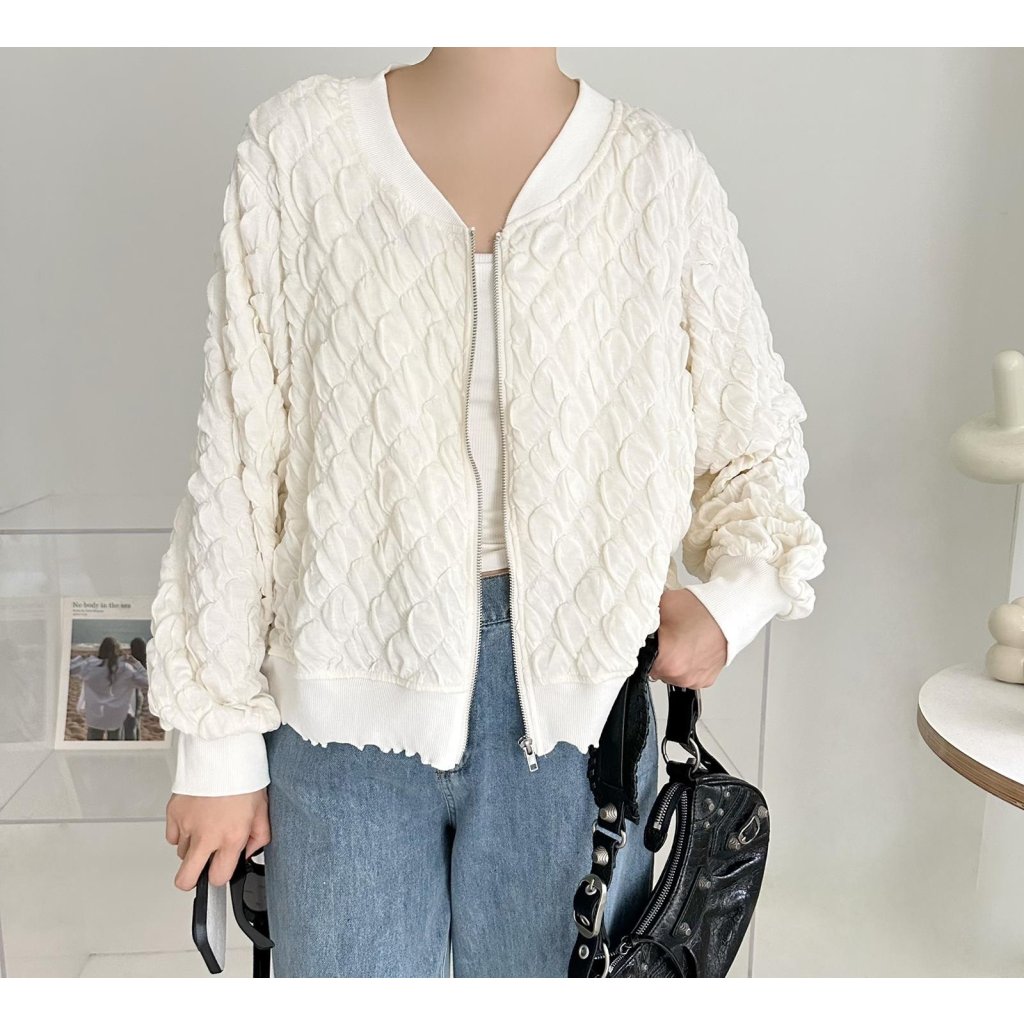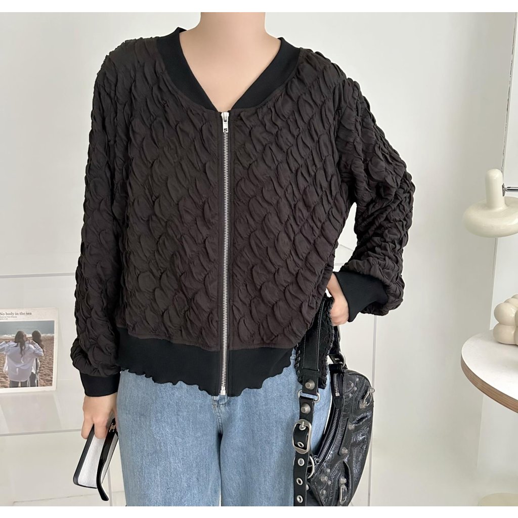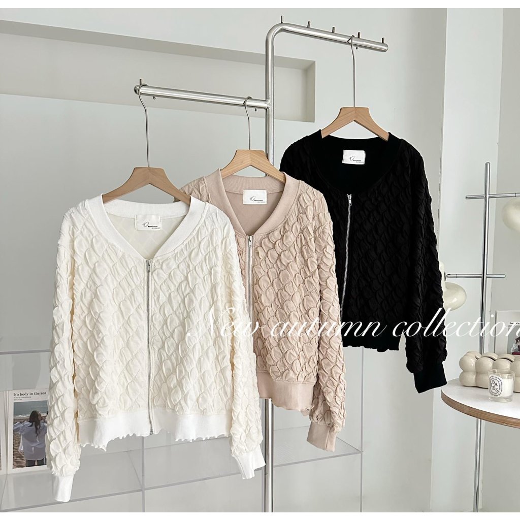 (現貨) #25694 BONNIE壓紋彈性棉料有袋拉鍊外套 (胸50吋 腳44吋 長22吋)
