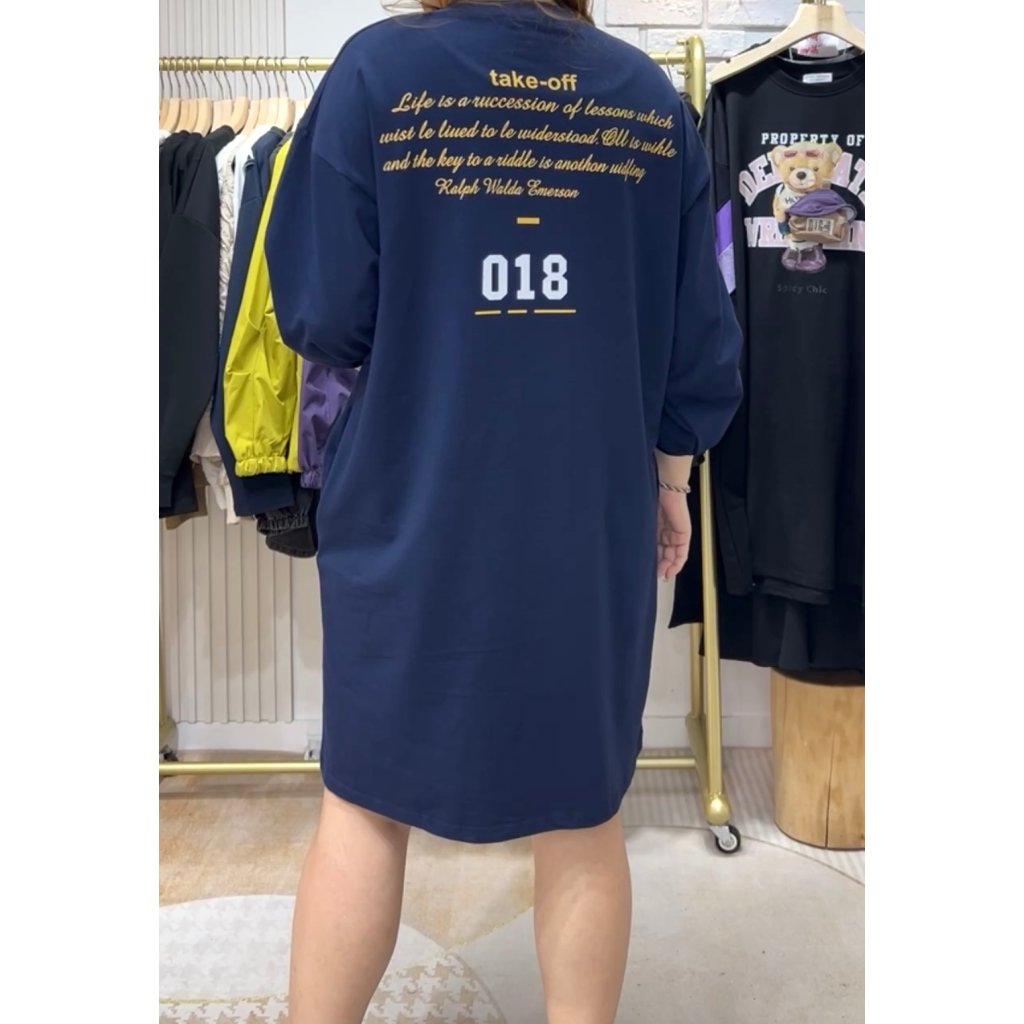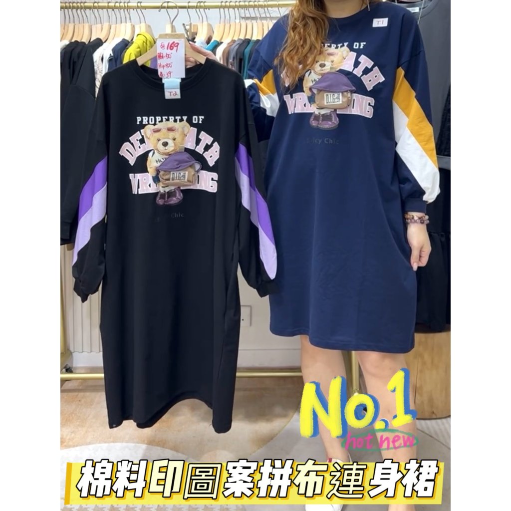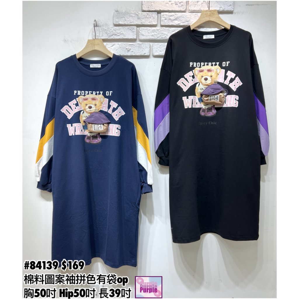 主頁 (現貨) #84139 棉料燙圖案袖拼色有袋連身裙 (胸50吋 Hip50吋 長39吋)