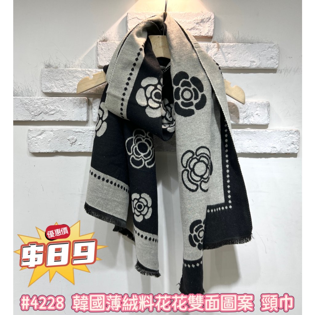 (現貨) #4228 韓國薄絨料花花雙面圖案 頸巾