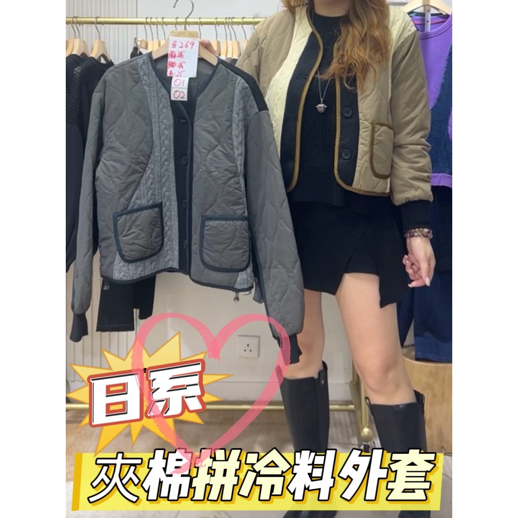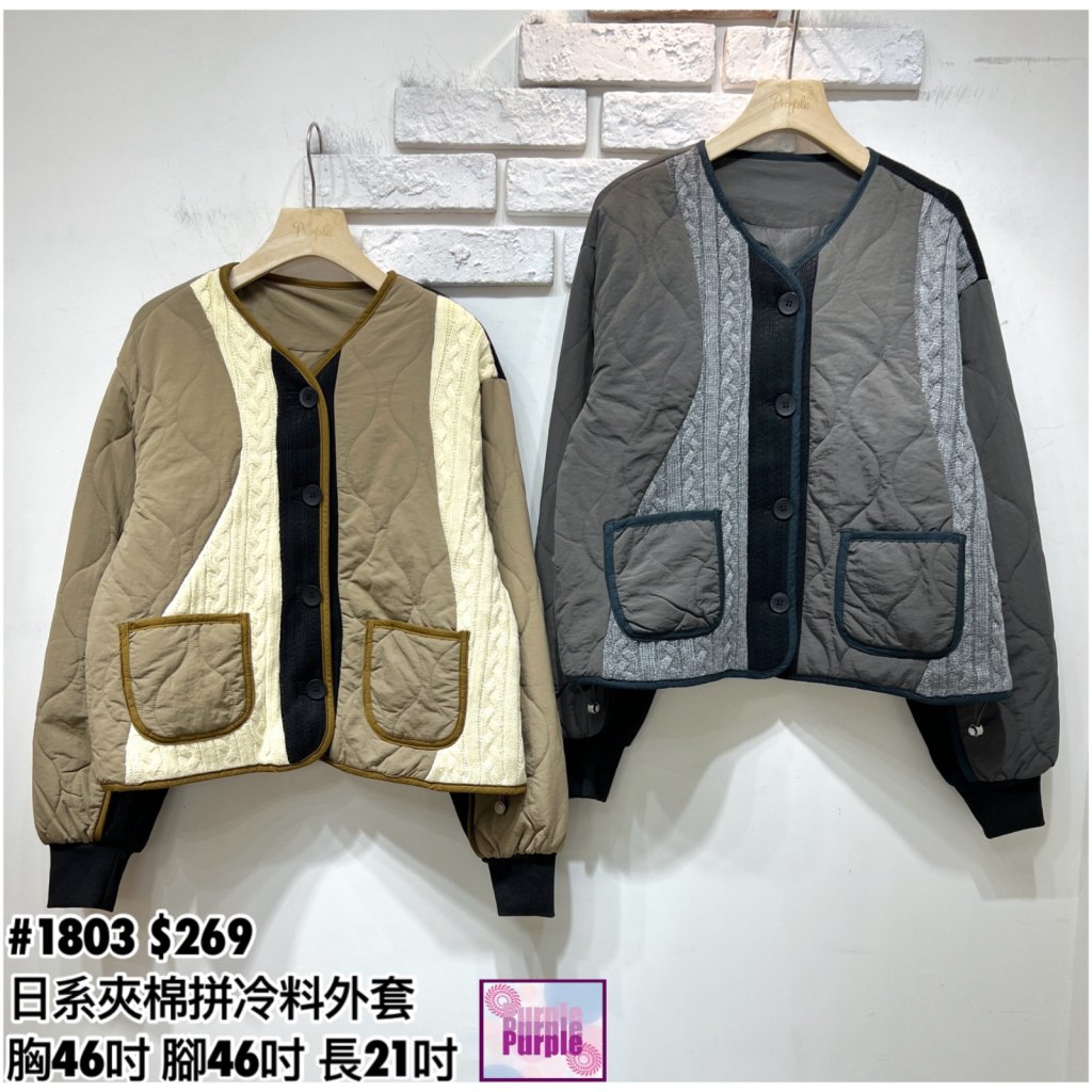 (現貨) #1803 日系夾棉料拼冷料有袋外套 (胸46吋 腳46吋 長21吋)
