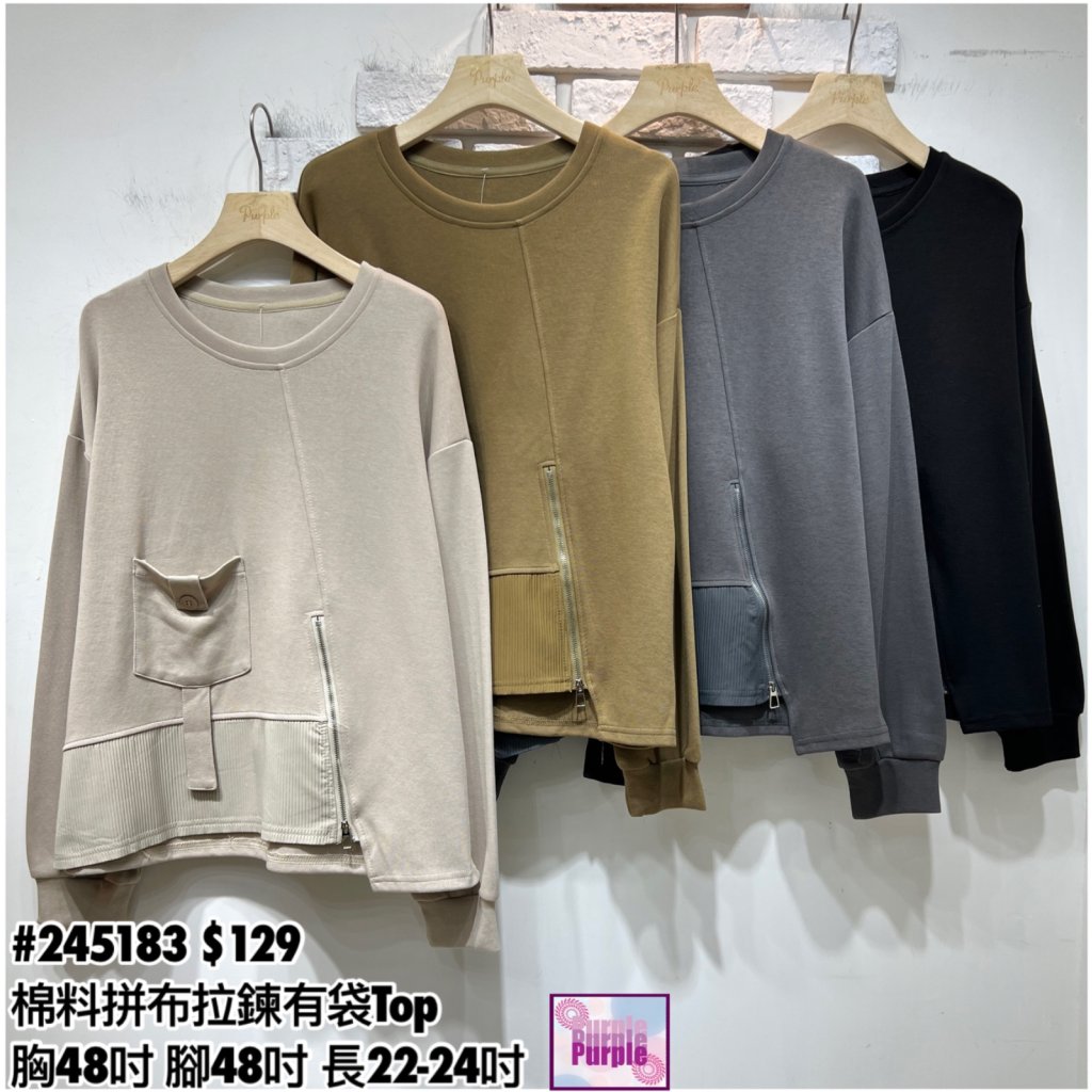(現貨) #245183 棉料拼布拉鍊有袋Top (胸48吋 腳48吋 長22-24吋)