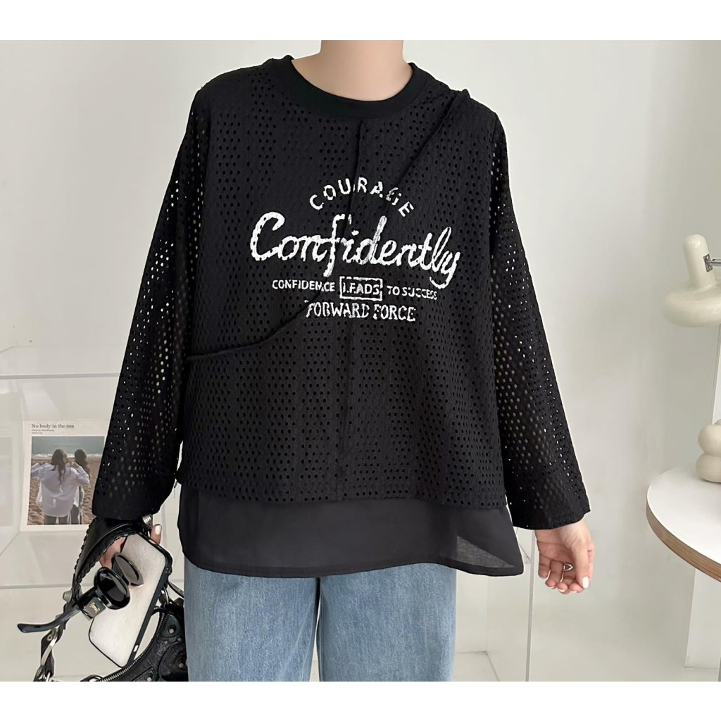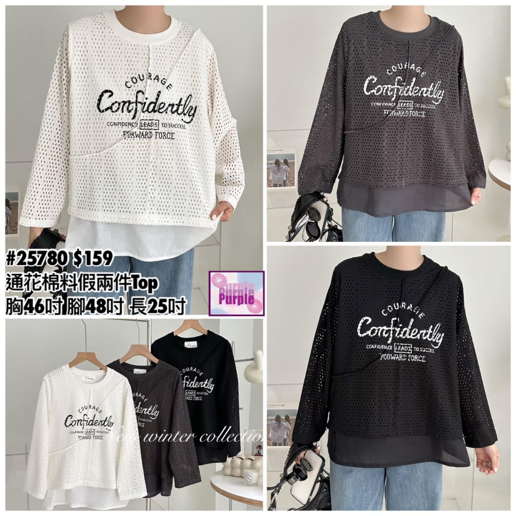 主頁 (現貨) #25780 BONNIE通花棉料假兩件Top (胸46吋 腳48吋 長25吋)