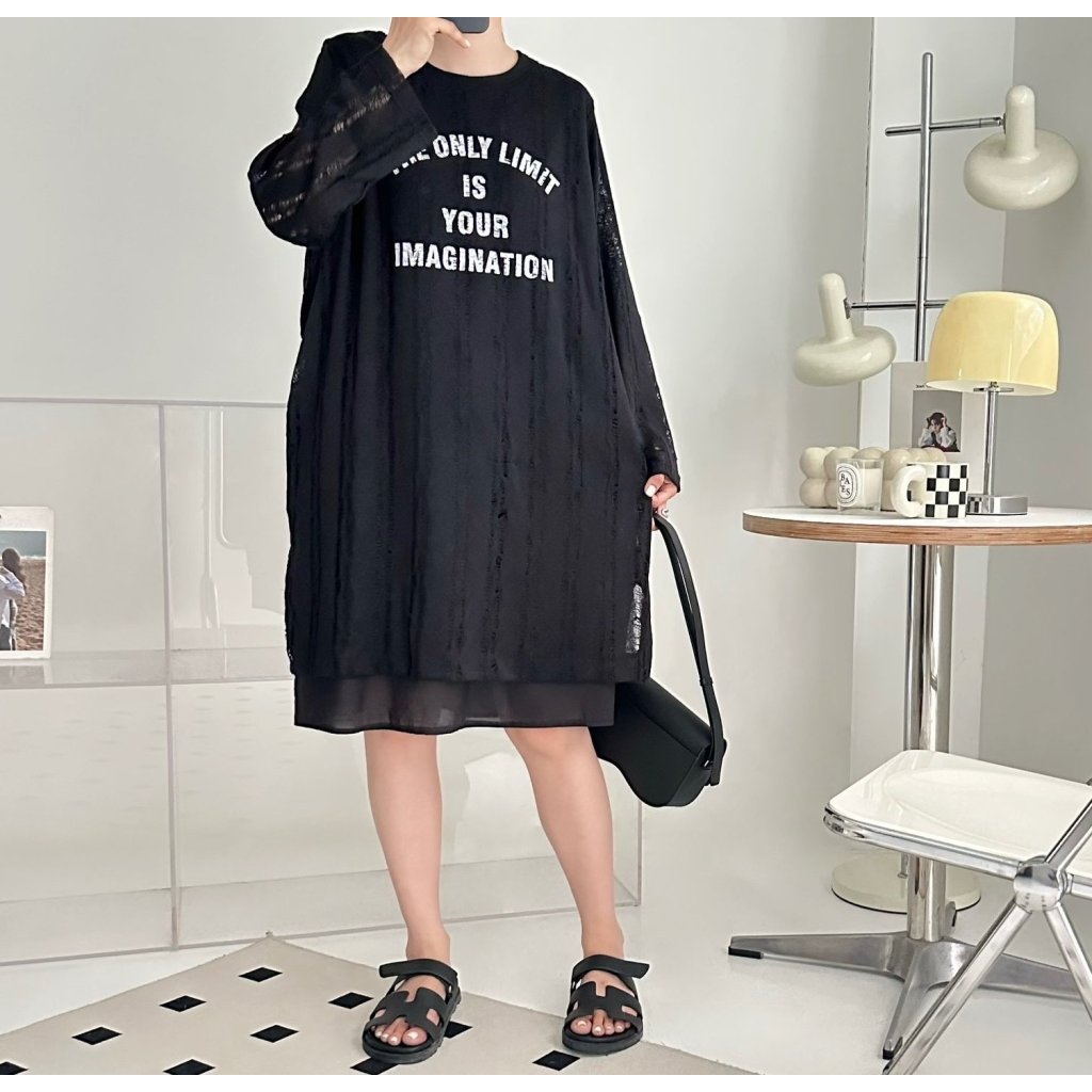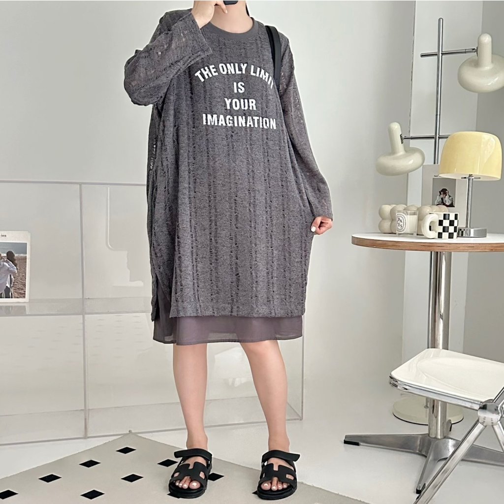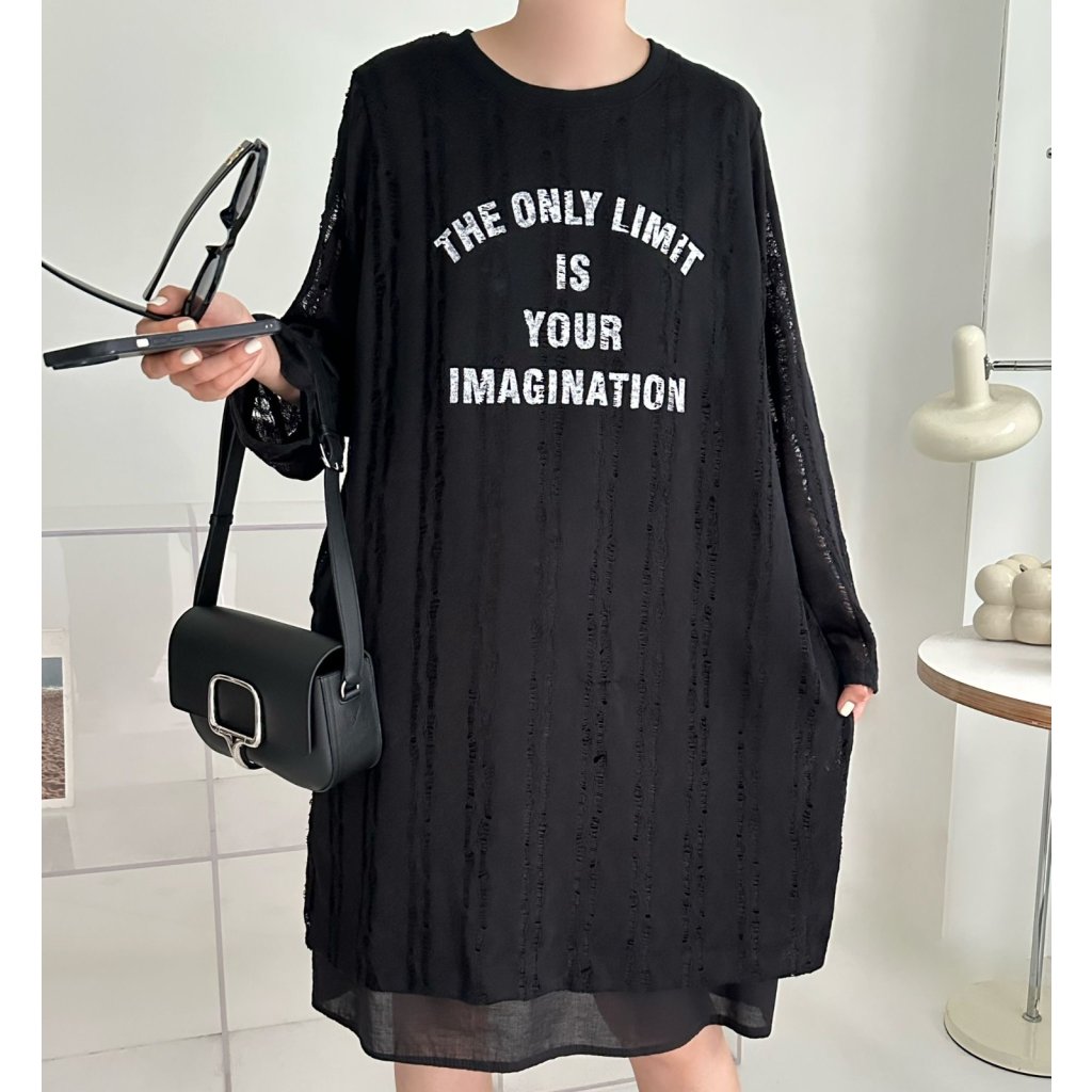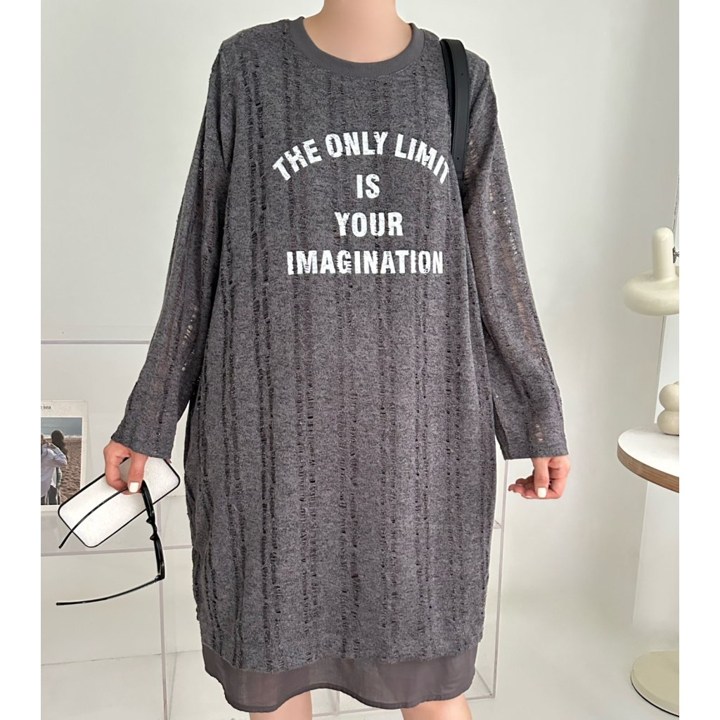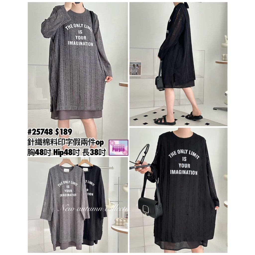 (現貨) #25748 BONNIE針織棉料印字假兩件有袋連身裙 (胸48吋 Hip48吋 長38吋)
