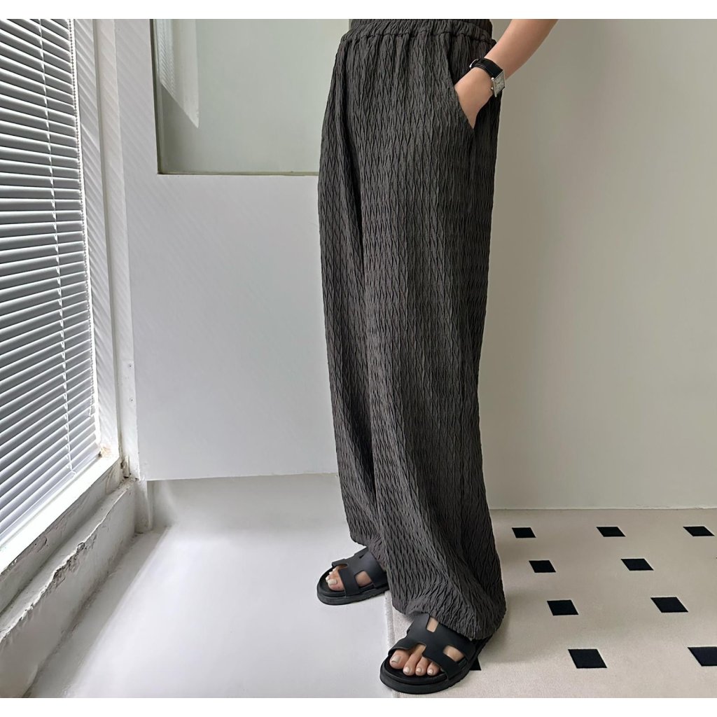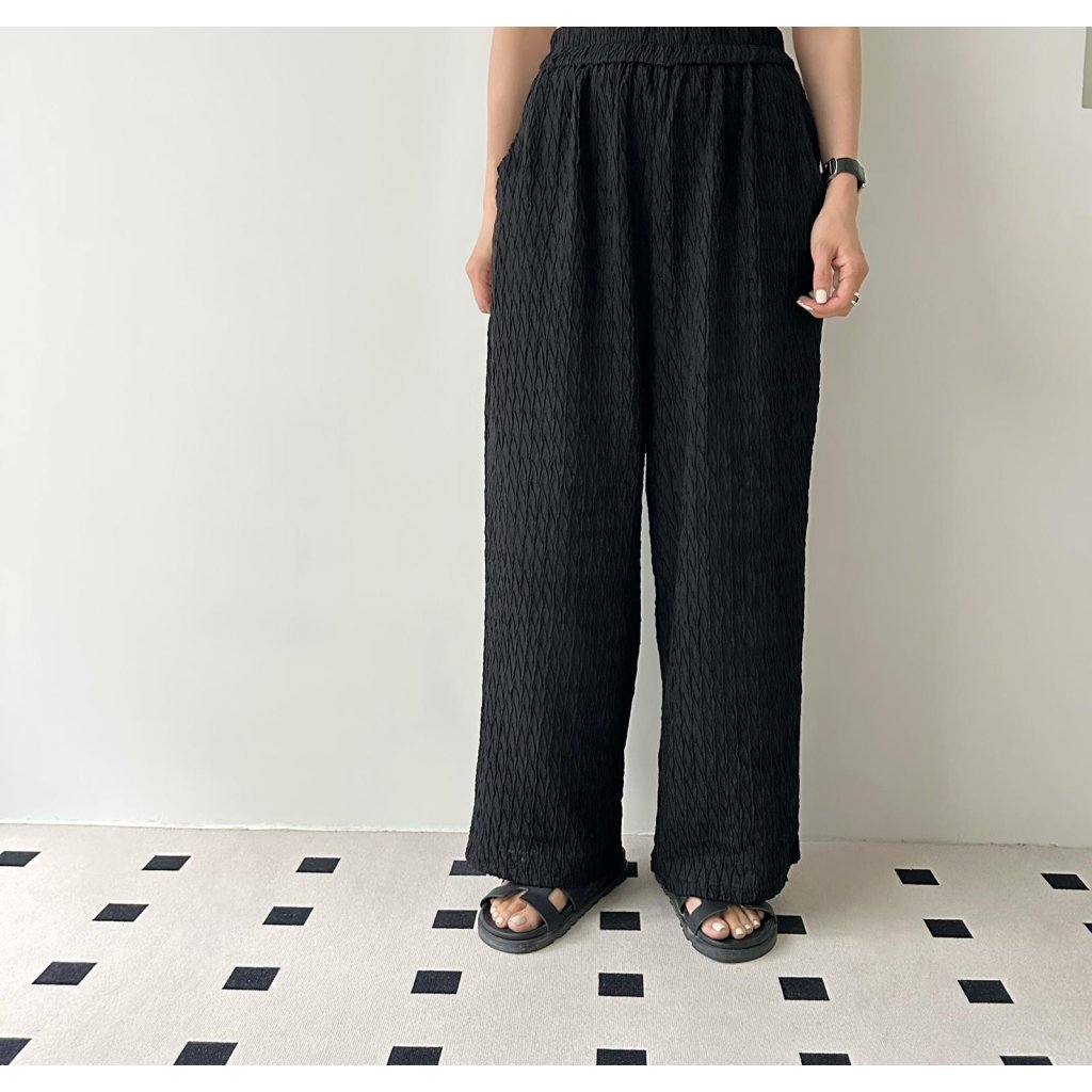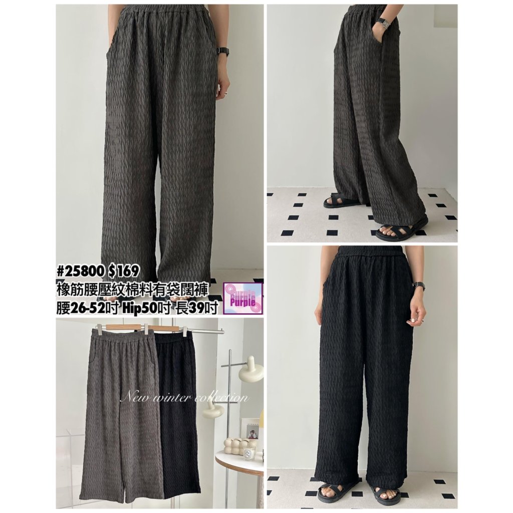(訂貨大約20天) #25800 BONNIE橡筋腰壓紋棉料有袋闊褲 (腰26-52吋 Hip50吋 長39吋)