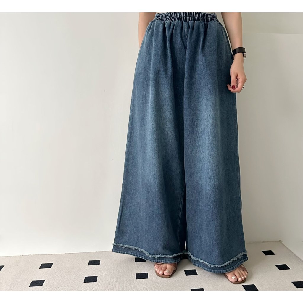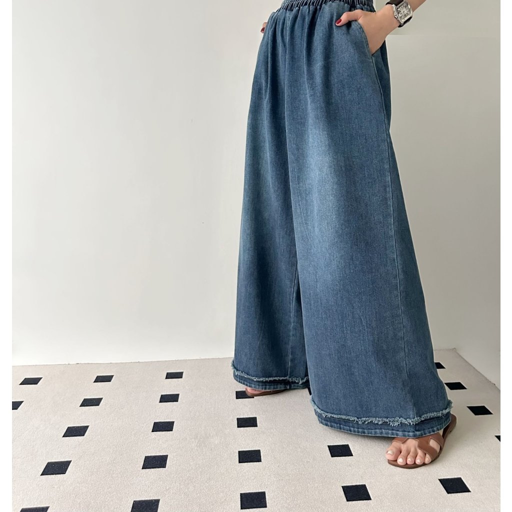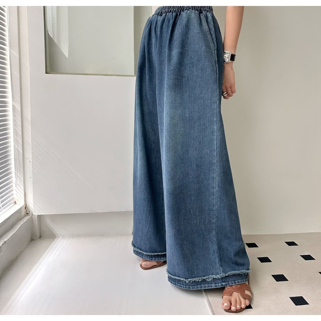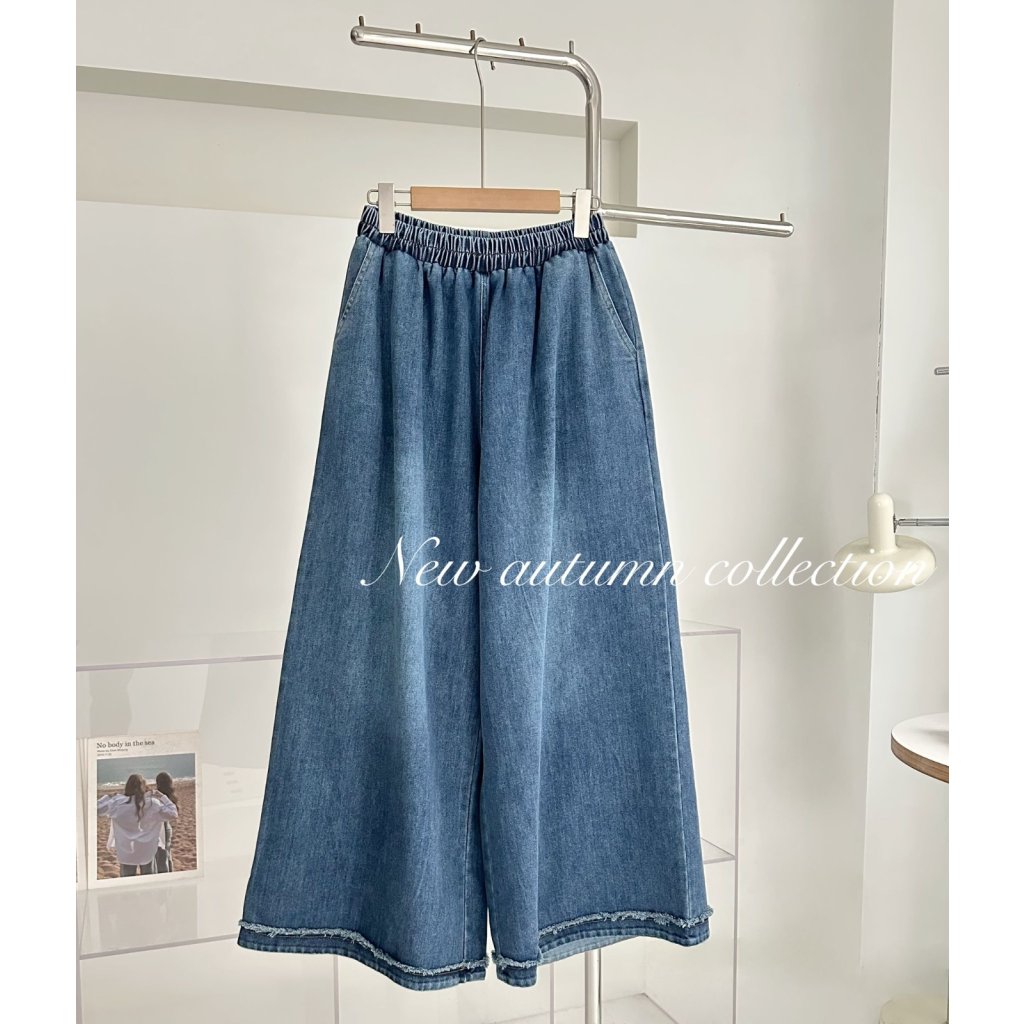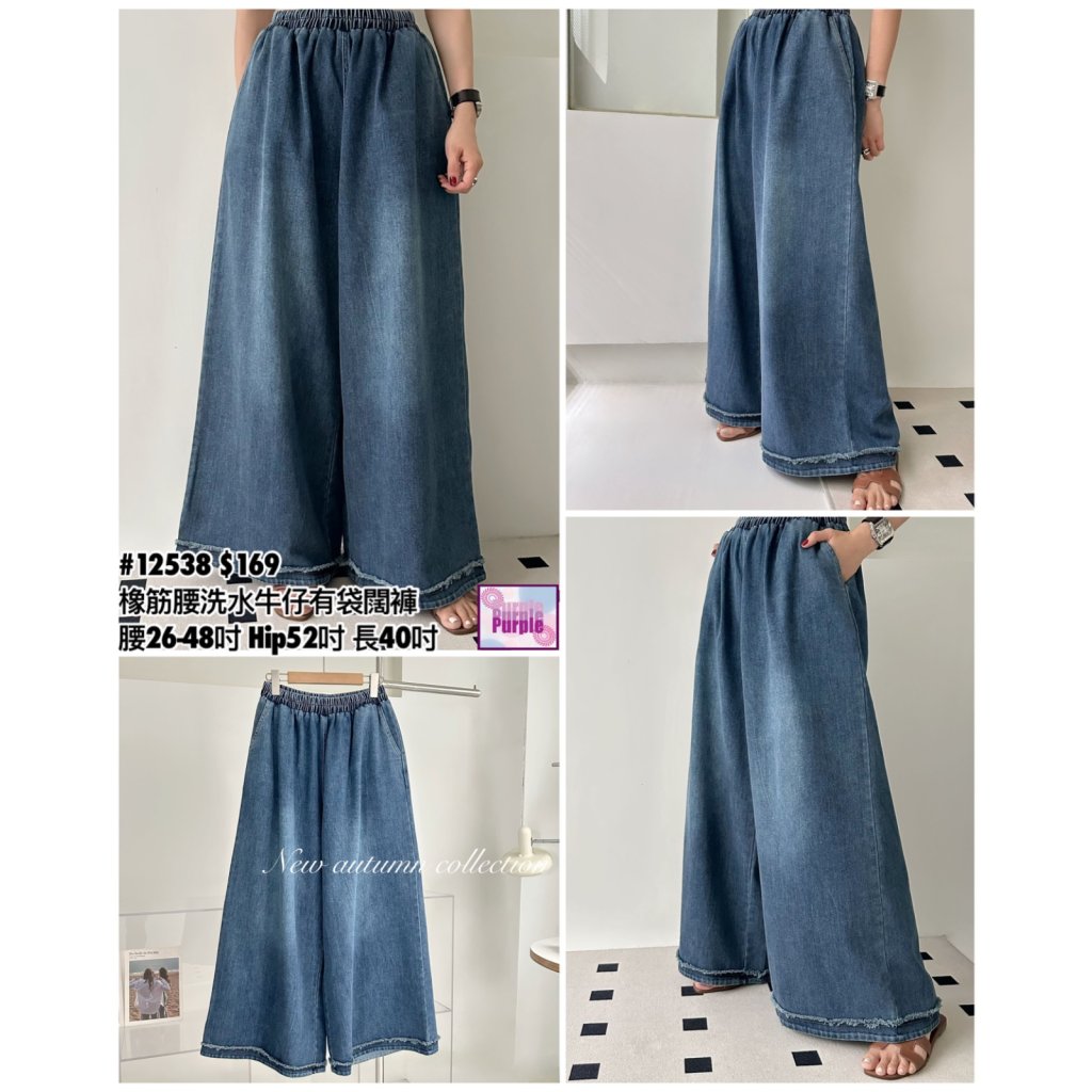 (現貨) #12538 BONNIE橡筋腰洗水牛仔有袋闊褲 (腰26-48吋 Hip52吋 長40吋)