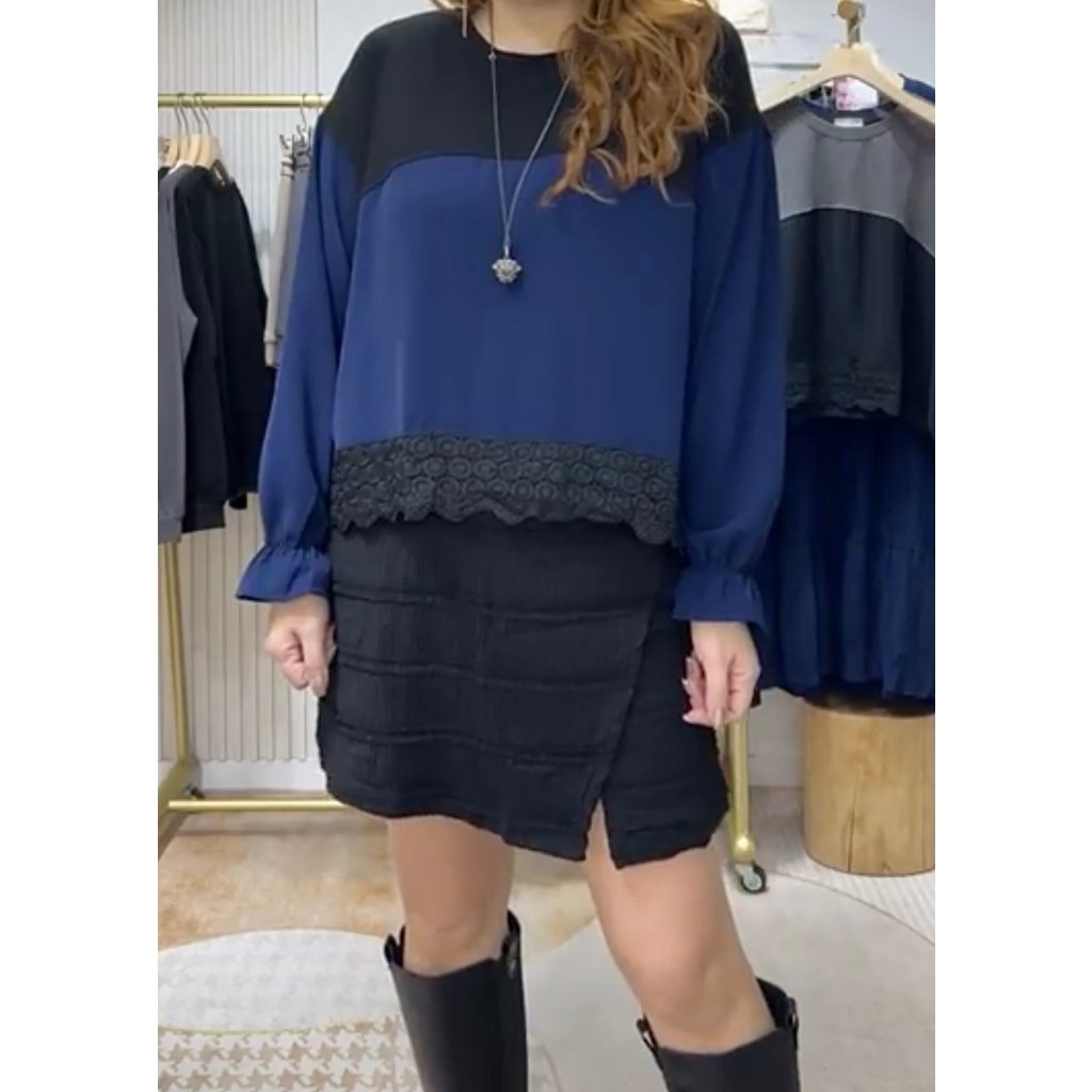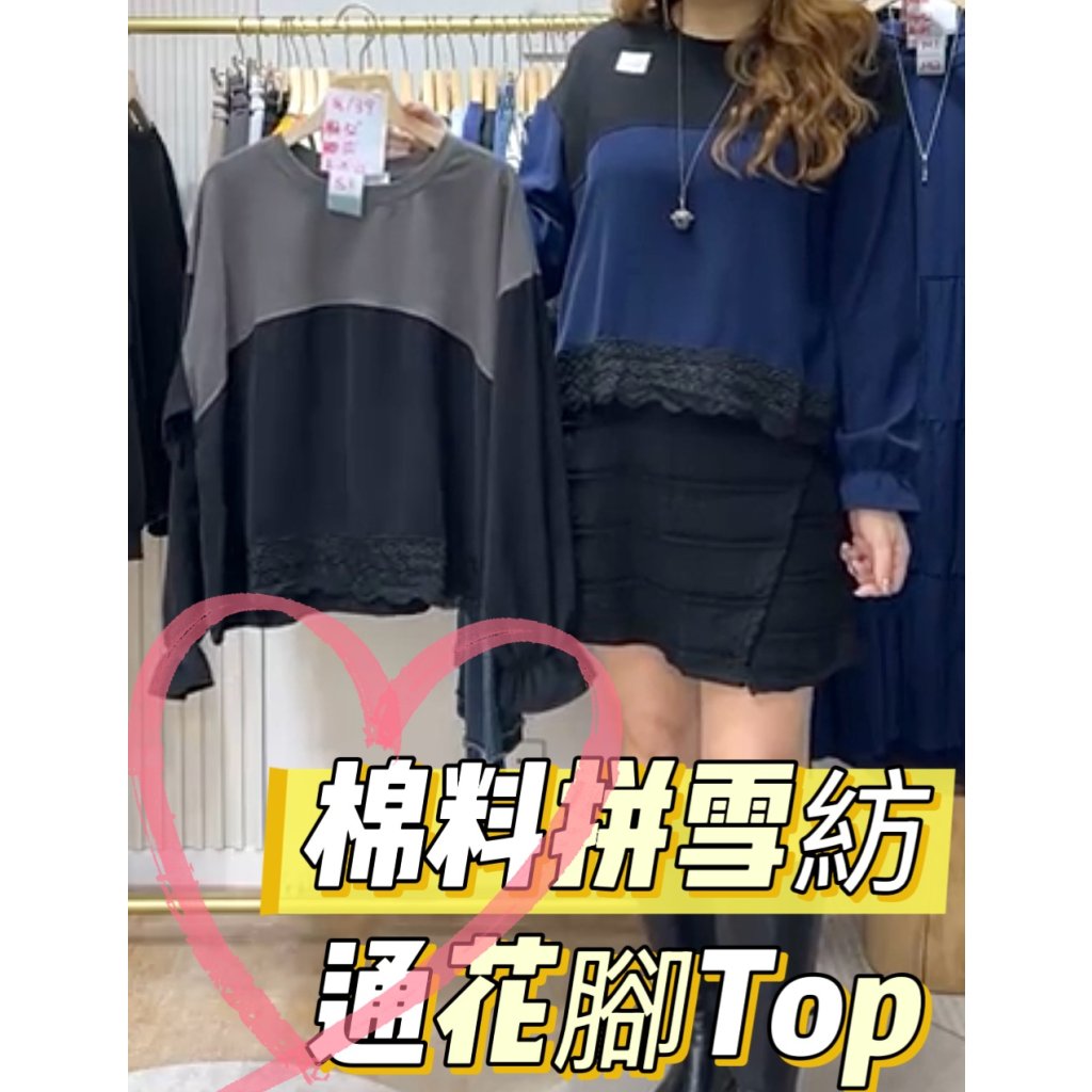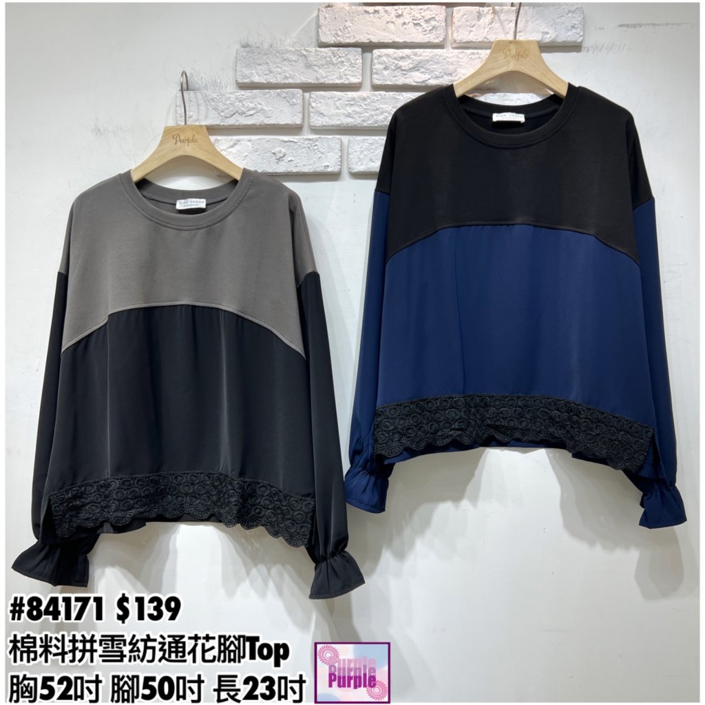 (現貨) #84171 棉料拼雪紡通花腳Top (胸52吋 腳50吋 長23吋)