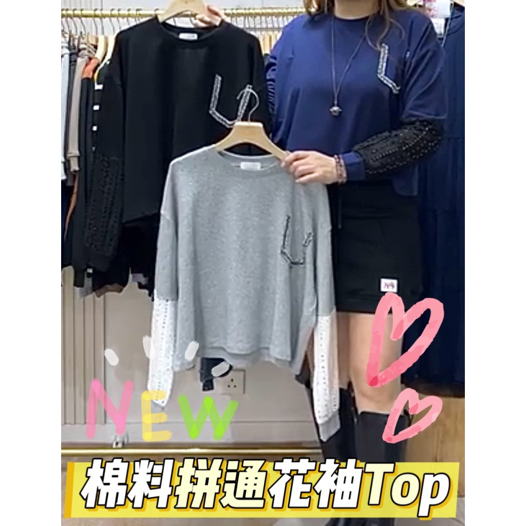 (現貨) #84177 棉料拼通花袖Top (胸50吋 腳50吋 長21吋)