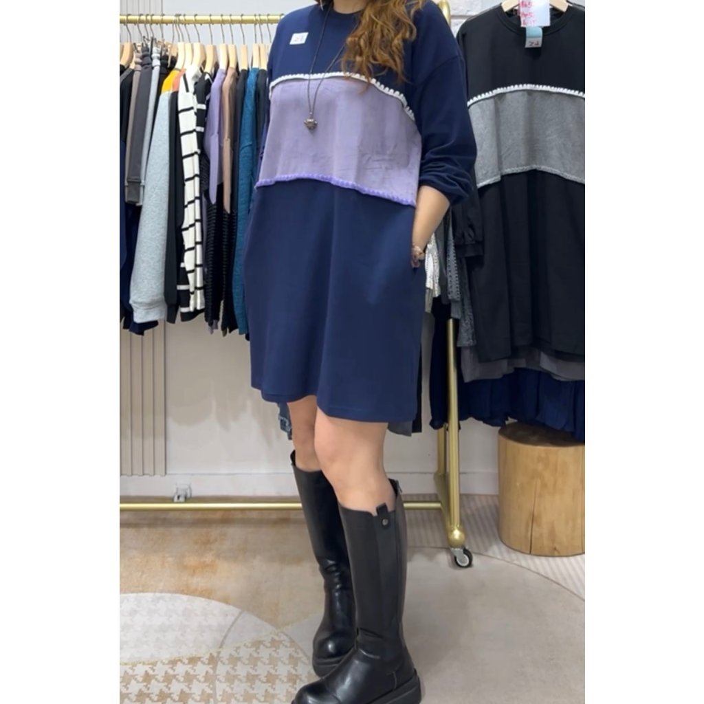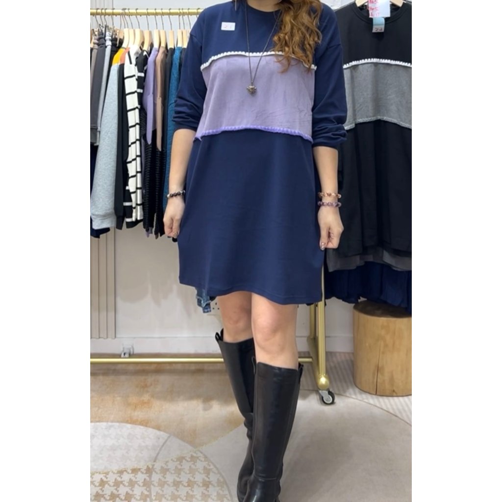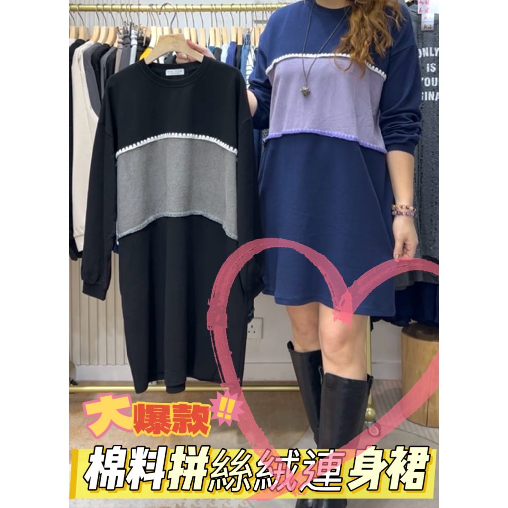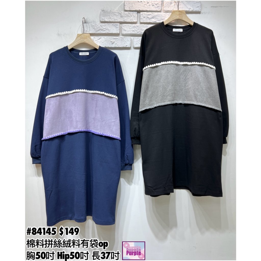 主頁 (現貨) #84145 棉料拼絲絨料有袋連身裙 (胸50吋 Hip50吋 長37吋)