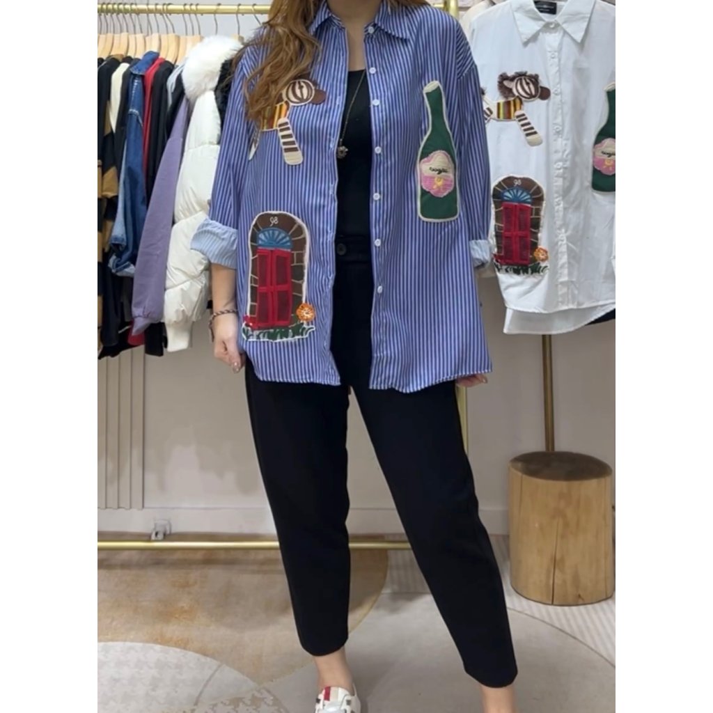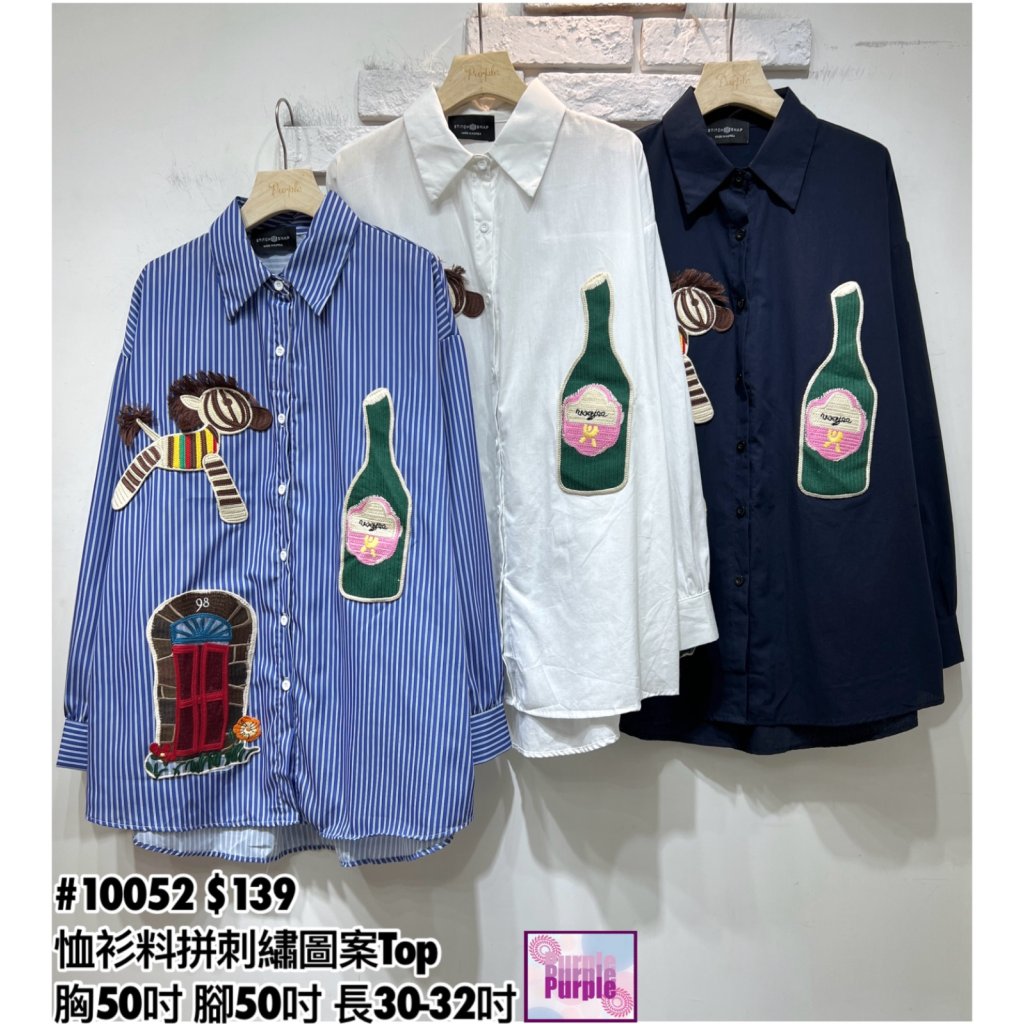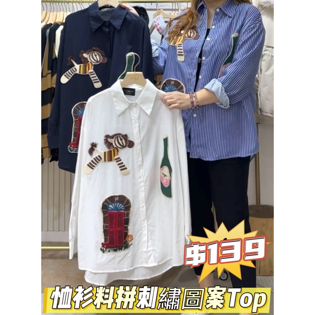 主頁 (現貨) #10052 恤衫料拼刺繡圖案Top (胸50吋 腳50吋 長30-32吋)