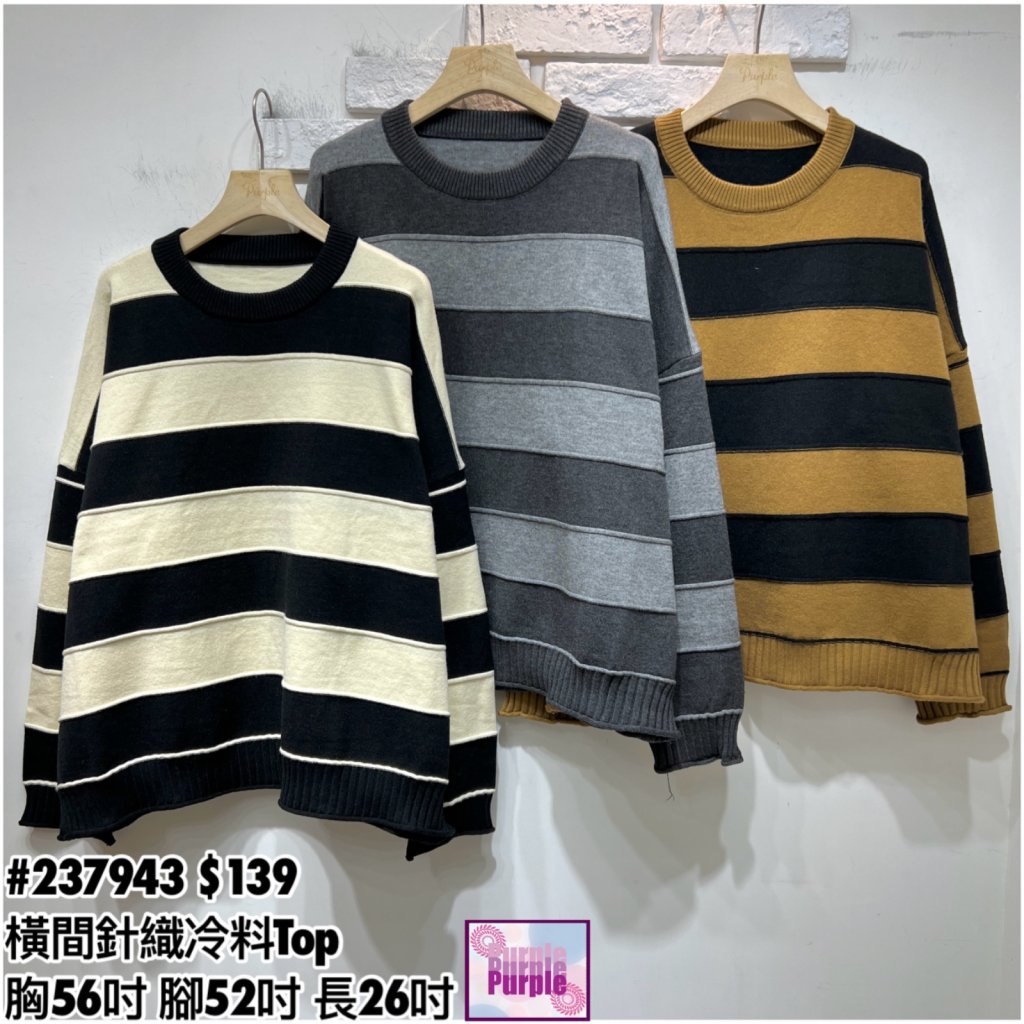 (現貨) #237943 橫間針織冷料Top (胸56吋 腳52吋 長26吋)