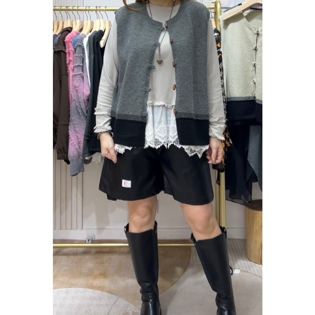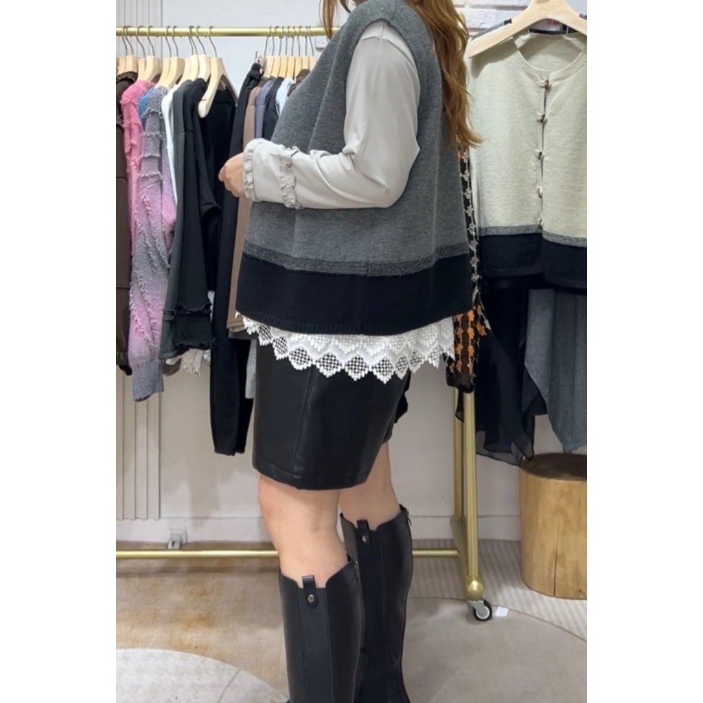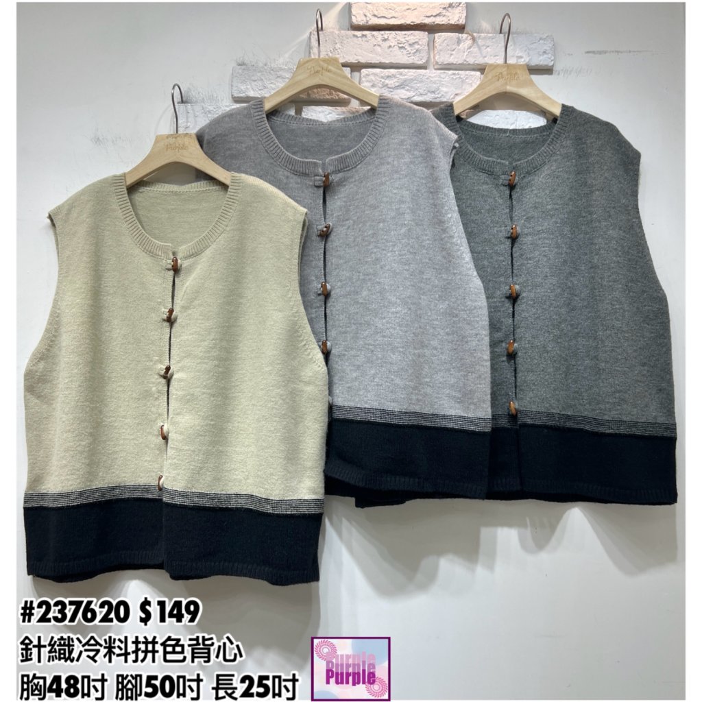 (現貨) #237620 針織冷料拼色背心外套 (胸48吋 腳50吋 長25吋)