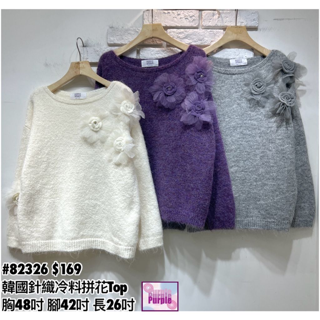 主頁 (訂貨大約20天) #82326 韓國針織冷料拼花花Top (胸48吋 腳42吋 長26吋)