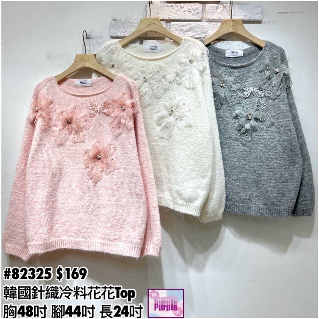 (訂貨大約20天) #82325 韓國針織冷料拼花花Top (胸48吋 腳44吋 長24吋)
